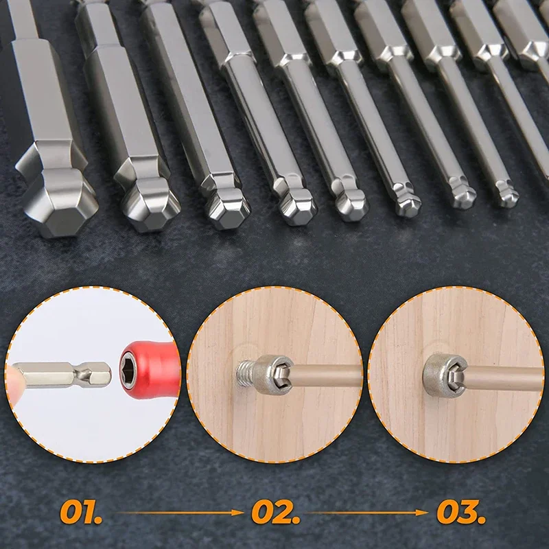 20 Teiliges Sechskant Schraubendreher Bit Set Mit Kugelkopf, 65 Mm Länge, SAE Und Metrisches Sechskant Bit Set, Magnetische Inbusschlüssel Bohrer