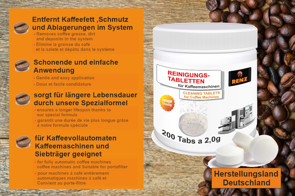 Kaffeevollautomat Reinigungstabletten Testsieger 200 Reinigungstabletten Für Kaffeevollautomaten Bosch Jura Melitta Jura Filterpatrone Claris Smart Zusätzlich bieten wir wertvolle Beratung und kompetenten Service - bundesweit. Coffeeano 150 Reinigungstabletten für Coffema ReinigungstablettenOptimal auf die tägliche Reinigung aller Kaffeevollautomaten und Maschinen mit Handeinwurf zugeschnitten: Effizient werden die Leitungen professioneller Kaffeemaschinen von sämtlichen Kaffeeresten befreit. P280 Schutzhandschuhe/Schutzkleidung/Augenschutz/Gesichtsschutz tragen. Hochwirksame Reinigungsformel: Für die tägliche Reinigung von Maschinen und Vollautomaten mit Handeinwurf - entfernt Kaffeerückstände, Fette und Öle - für optimalen Kaffeegenuss und längere Lebensdauer Als Komplettdienstleister auf dem Gebiet professioneller Kaffeemaschinen widmen wir uns bei Coffema bereits seit über 50 Jahren mit Begeisterung dem Thema Kaffee. Lebensmittelhygienisch unbedenklich, stark und nachhaltig in der Wirkung: Kaffeemaschinenreiniger in Tabletten-Form, reinigt auch hartnäckige Rückstände - schnell löslich und leicht dosierbar physikalische Eigenschaften- schwach alkalisch- nicht schäumend- lebensmittelgerecht- geschmacksneutral- schnell löslich. Alles, was den Kaffee-Geschmack optimiert und die Vorgänge rund um dessen Zubereitung effizienter und komfortabler macht, ist unser Anliegen. Coffema Reinigungstabletten Kaffeevollautomaten (1 g) - 1 x 30 Tabs - entfettet und reinigt - für die professionelle Reinigung von Kaffeemaschinen aller Marken. Kostenlose Lieferung ab 20 EUR für Küche, Haushalt & Wohnen-Produkte direkt von . COFFEMA Das wirkt sich negativ auf Lebensdauer und Energieeffizienz aus. NGRN »NGRN Bremsen- Telerenger 500ml rengt & entfettet Kfz... Zubehörteile, Leuchtmittel, Haushaltswaren, -kleingeräte, Reiniger und Entkalker an. Ob es sich also um die Maschinen von Privat- oder von Gewerbekunden handelt – die Geräte sind bei Coffema stets in den besten Händen. Diese Reste können in der Brühgruppe und Brüheinheit zu Verstopfungen führen. P332+P313 Bei Hautreizung: Ärztlichen Rat einholen/ärztliche Hilfe hinzuziehen Besondere Kennzeichnung Enthält 5% und darüber, jedoch weniger als 15% Phosphonate 15% und darüber, jedoch weniger als 30% Bleichmittel auf Sauerstoffbasis Er ist zudem luftdicht und wiederverschließbar verpackt. Der Reiniger ist mit nahezu allen gängigen Kaffeemaschinen-Herstellern und Typen kompatibel. So wird mit unseren Reinigungsprodukten für Maschinen die Lebensdauer der Kaffee-Automaten verlängert und - natürlich - für ein gleichbleibendes Qualitätsniveau der Heißgetränke gesorgt.