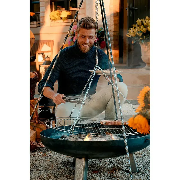 Der Edelstahl-Schwenkgrill in Kombination mit der schmiedeeisernen Gartenfeuerstelle ist perfekt für ein Treffen mit Freunden, einen gemütlichen Grillabend oder einen Ausflug zum See. Mit den auf beiden Seiten der Schale montierten Handgriffen können Sie schnell und einfach an jeden beliebigen Punkt des Gartens oder Terrasse, ein Lagerfeuer einfach und sicher bewegen. Dreibeine / Schwenkgrills aus Edelstahl. Für ein beosnderes Grillerlebnis. Ideal für Feuerstellen und Feuerschalen. Direkt beim Hersteller hier online kaufen Die gesamte Struktur ist sehr stabil und stark, alle Elemente sind zusammengeschweißt. Die tiefe Schale ermöglicht es Feuer auch bei starkem Wind zu erhalten. Mittels einer Umlenkrolle und einer Kette ist der Edelstahl-Grillrost in der Höhe verstellbar. 185 cm hoch und auch auf unebenem Untergrund einsetzbar. Verwenden Sie nur trockenes, unbehandeltes Holz als Brennmaterial. Komplette Liste auf Damit die leckeren Würstchen und das knackige Gemüse auch gleichmäßig gegrillt werden, sollte die Feuerstelle einen ähnlichen Durchmesser haben wie der Grillrost. Wir empfehlen die Feuerschalen. Komplette Liste auf Komplette Liste auf Gastro Dreibein Schwenkgrill 100 cm von Mittels einer Umlenkrolle und einer Kette ist der Grillrost in der Höhe verstellbar Grillrost Schwenkgrill GLÜHZONE HKG 200 Schwenkgrill - Robuster Dreibein Holzkohlegrill Mit Feuerschale 160 Cm 50 Cm Grillrost Feuerschale 60 Cm Durchmesser Die beeindruckende Garten-Feuerstelle hat einen modernen Designer-Look und ist das perfekte Geschenk für Terrasse oder Veranda. Dreibeine / Schwenkgrills aus Edelstahl. Ob Lagerfeuer oder Feuerschale, das Grillgut hat dadurch immer die optimale Hitze.