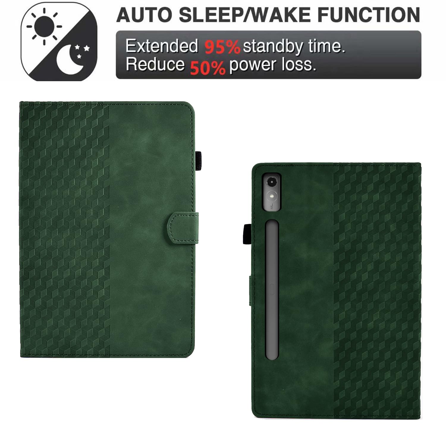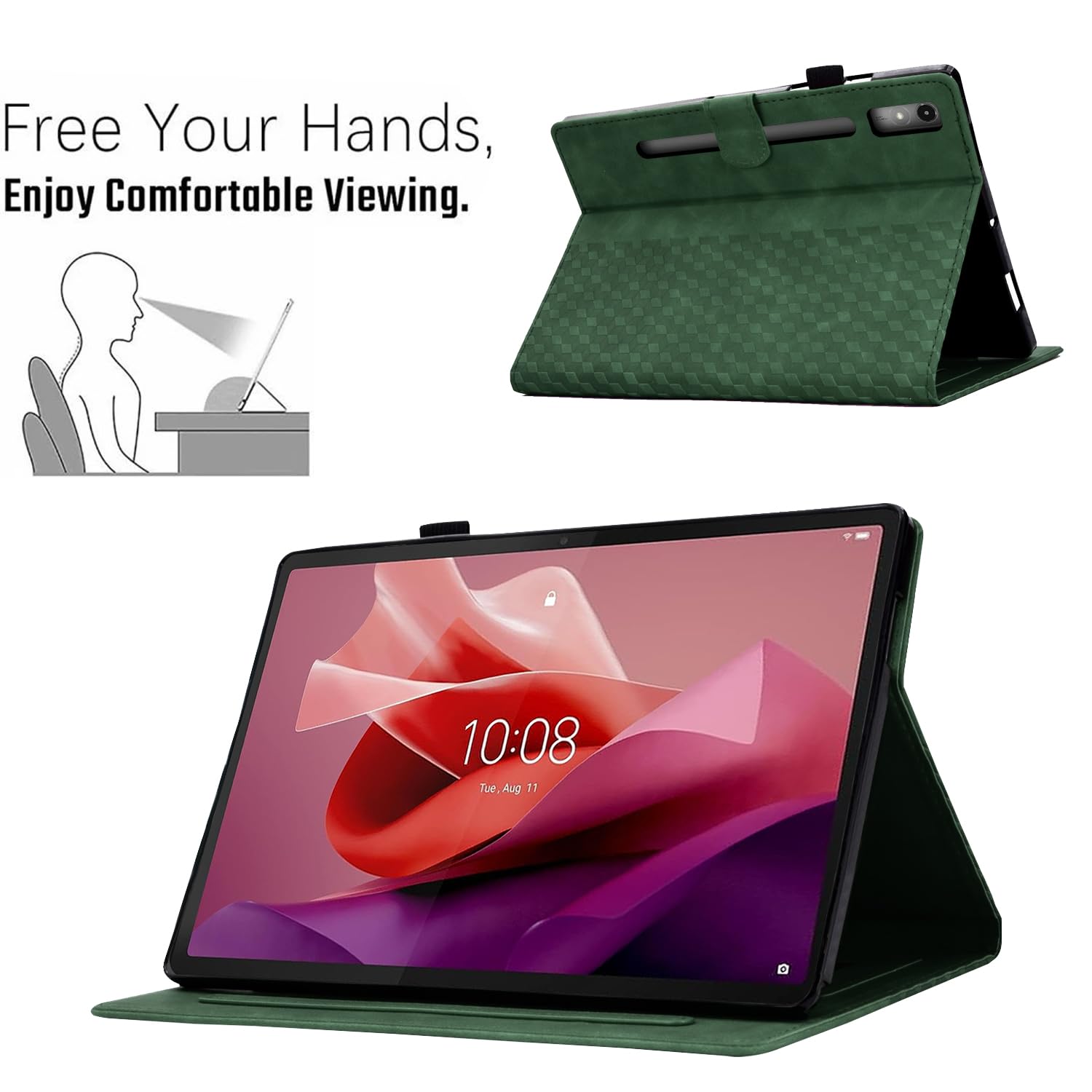 CASAFUNY Hülle Für Lenovo Tab P12 12.7 Zoll 2023, PU Leder Tablette Schützhülle Multi-Winkel Ständer Cover Case Mit Auto Schlaf/Wach Für Lenovo Tab P12 2023, Grün