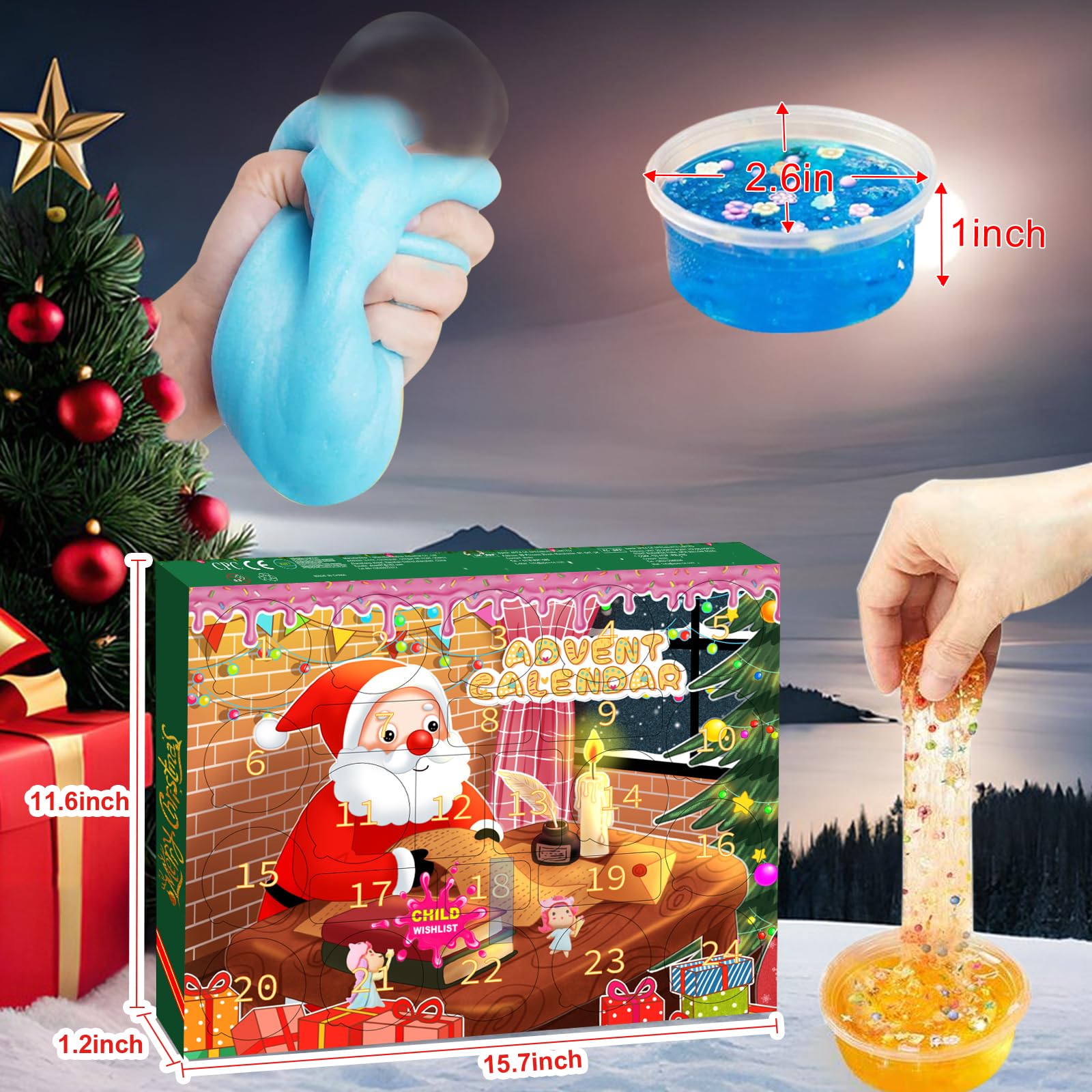 Sudatong Schleim Adventskalender 2024 Kinder DIY Slime Herstellungsset 24 Tage Weihnachten Countdown Weihnachtskalender Für Mädchen Jungen 4 5 6 7 8 9 10 11 12 Jahre Alt