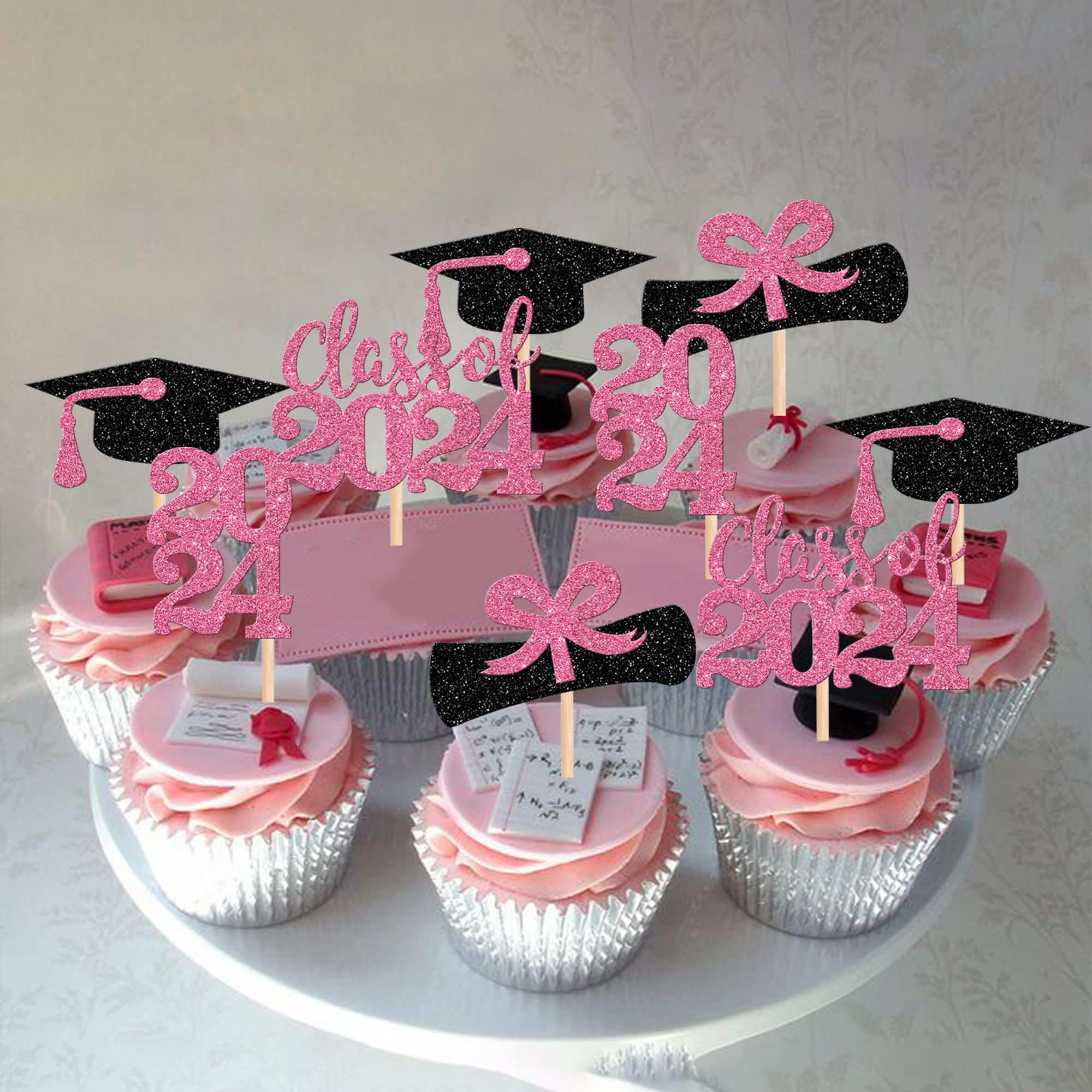 Rsstarxi 36 Stück 2025 Abschluss Motiv Cupcake Topper Glitzer Klasse