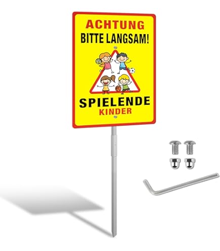 Schild ACHTUNG! Spielende Kinder Querformat ab 40 cm x 30 cm Kinderschilder aus hochwertigem Alu-Kunststoff-Verbundmaterial oder Hart-PVC gefertigt, sind witterungs- und UV beständig. Diese Materialien sind sowohl für den Innen- und Aussenbereich einsetzbar. Verschiedene Formate stehen zur Wahl verkehrsschilder für kinder Es ist UV-beständig und verblasst nicht, was eine langanhaltende Sichtbarkeit gewährleistet. Es bleibt auch bei starkem Regen, Schnee oder intensiver Sonneneinstrahlung gut sichtbar., achtung spielende kinder , achtung kinder aufsteller , warnschild spielende kinder, vorsicht kinder aufsteller Klares und auffälliges Design Mit der auffälligen Aufschrift Achtung Kinder! Es kann problemlos an verschiedenen Oberflächen wie Wänden, Zäunen oder Pfosten befestigt werden. und einer Größe von 30*20cm sorgt das Schild für maximale Aufmerksamkeit und erhöht die Sicherheit in der Umgebung. Schild Achtung spielende Kinder Warnschild in Nordrhein-Westfalen - Oelde Vorsicht Kinder Schild TAKULA Achtung Kinder Schild-Warnschild Spielende Kinder-30 * 20CM Reflektierendes Metall Schild Spielende Kinder,Wasserdichte Und Staubdichte Warnschilder Schild Eltern Haften Für Ihre Kinder Vorsicht spielende Kinder" Schilder werden verwendet, um Autofahrer und andere Verkehrsteilnehmer darauf aufmerksam zu machen, dass sich in der Nähe spielende Kinder befinden, und sie dazu aufzufordern, besonders vorsichtig und aufmerksam zu fahren Das Warnschild weist Autofahrer auf die Notwendigkeit hin, langsamer zu fahren und besonders aufmerksam zu sein.