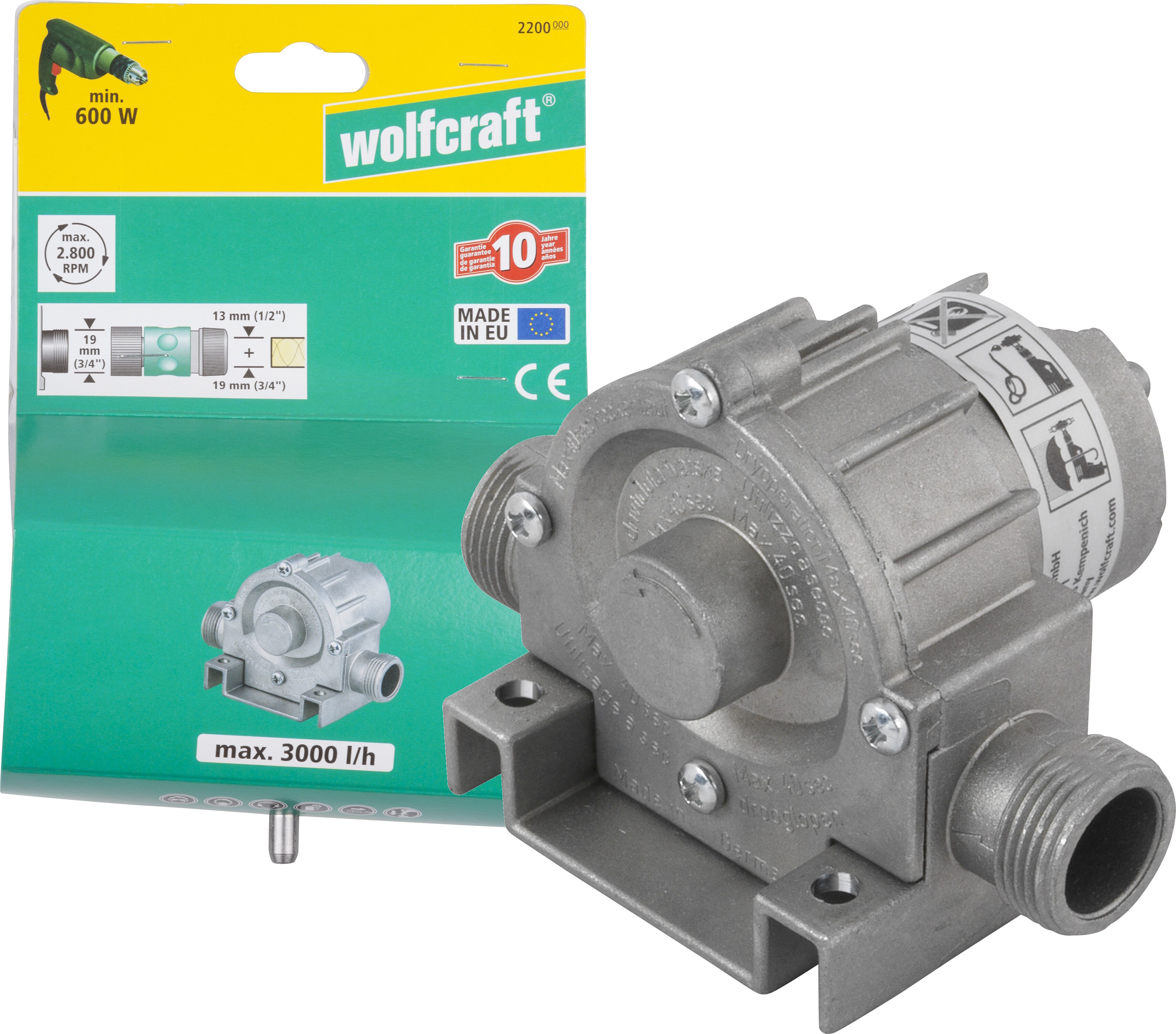 Wolfcraft Bohrmaschinen Pumpe 2207000 | Selbstansaugende Wasserpumpe