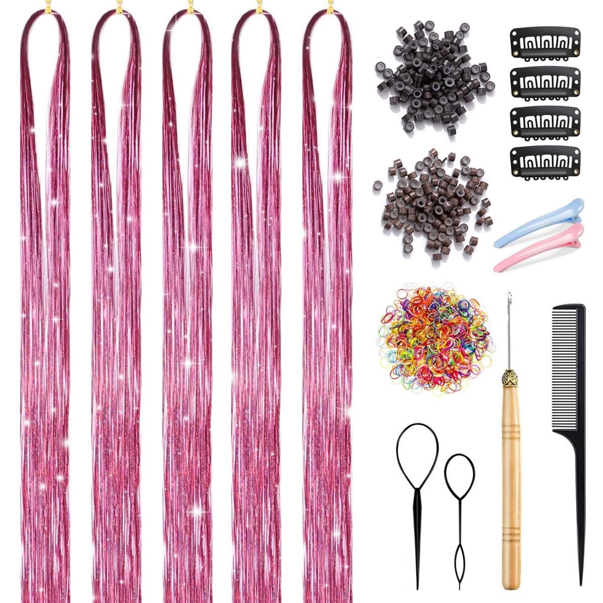 Sofeiyan Hair Tinsel Strands Kit Mit Werkzeugen 12 Farben 2400 Stränge Tinsel Haarverlängerung Halloween Weihnachten Haarschmuck Für Frauen
