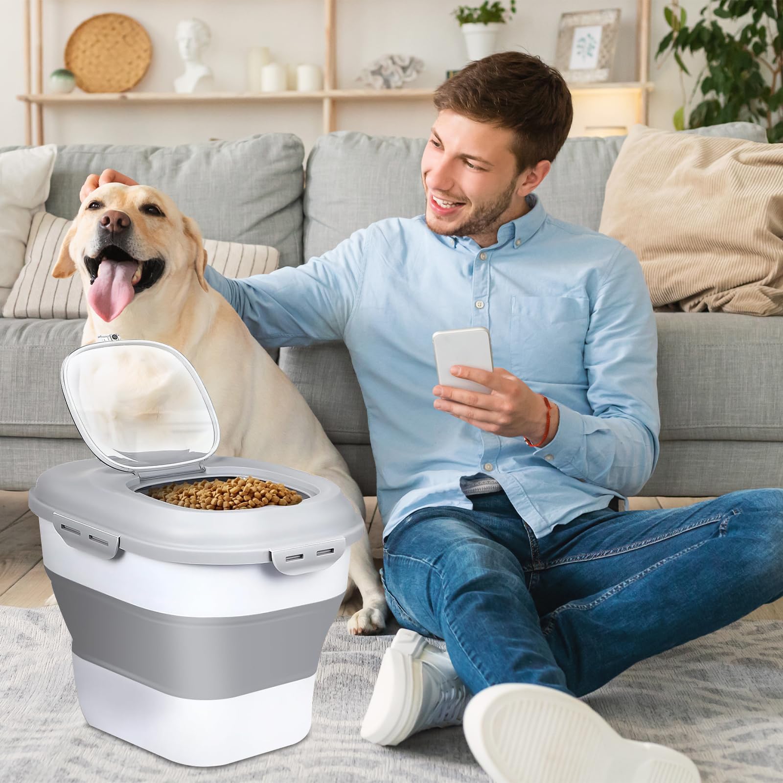 greemotion Bollerwagen, Faltbarer Handwagen 4 Eingebaute abnehmbare Räder und Griff: Sind Sie es leid, schwere Beutel mit Tierfutter zu tragen? Unser Hundefutterbehälter ist mit einem abnehmbaren Griff und 4 abnehmbaren Rollrädern ausgestattet, wodurch er leicht zu bewegen ist. Bietet ultimativen Komfort für Haustierbesitzer. Platzsparendes Design: Der luftdichte Hundefutterbehälter lässt sich mit einem Griff zusammenfalten, wodurch er einfach zu verstauen ist und wertvollen Platz in Ihrem Zuhause spart. 【Was Sie bekommen】 Der Leckerli-Behälter für Hunde kommt mit 1 Griff, 1 Hundefutterschaufel, 4 abnehmbaren Rädern und 1 Futternapf, für einfaches Servieren. Hervorragende Abdichtung für Frische: Ausgestattet mit doppelten luftdichten Dichtungen und 4 seitlichen Verschlussdeckeln sorgt dieser Behälter dafür, dass das Futter Ihres Haustieres länger frisch und frei von Feuchtigkeit bleibt. Vielseitige Aufbewahrung: Dieser Aufbewahrungsbehälter für Tierfutter ist perfekt für Hundefutter, Katzenfutter und andere Tierfutter. Aufbewahrungsbehälter für Tiernahrung Futterbox 10kg Vorratsbehälter-Set 24er Set Luftdicht Mit Deckel Frischhaltedosen Futtertasche Für Hunde Vorratsbehälter für Hunfutter, 11 Pfund, vielseitiger Vorratsbehälter mit aufklappbarem ckel, integrierter Trockenmittelbox, mit einem Druck zu öffnenr Vorratsbehälter für Tierfutter für Hun und Katzen bei SHEIN entcken 【Entfaltete Größe】 16,54 L x 10,15W x 15H (33 Qt), geeignet für die Aufbewahrung von 12,7 kg Hundefutter.