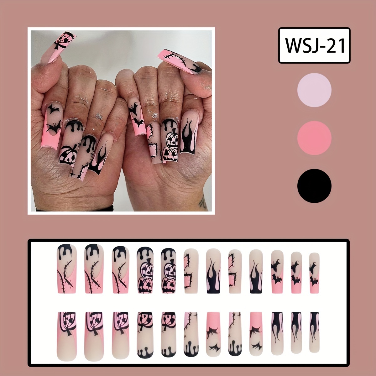 24p Halloween Langer Sarg Rosa Mond Nagel Kunst Künstliche Nägel Künstliches Acryl Klebrig Auf Nägeln Nahtlos Abnehmbar Auf Nagels Pitzen Drücken
