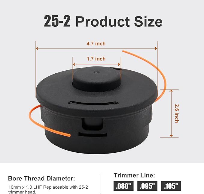 AutoCut C26-2 Fadenkopf Für STIHL FS55 FS56 FS70 FS80 FS85 FS90 FS94 DBREAKS 2 Stück Mähkopf für Autocut 25-2 Freischneider Fadenkopf M10x1 Paket enthält 5 Stück 25–2 Unkrautfresserköpfe. 25-2 Trimmerkopf passend für Motorsense, Unkrautfresser, Räumsägen, Elektro-Trimmer, Kombi Motoren, Kombi Werkzeuge Kompatibilität: Kompatibel mit Stihl FS130, FS130R, FS131, FS131R, FS200 (ab 1997), FS200R, FS240, FS240R, FS250, FS250R, FS260R, FS460R (ab 2011), FR85, FR85., T FR106 FR108 FR130T FR220 FR350 FR410 FR450 FR460 FR480 KM55 KM85 KM90 KM110 KM120 KM130 KA85, KA85R, KR85, FS-KM Trimmerkopf Spezifikationen: Kompatibilität: Kann 0,80 Zoll, 0,95 Zoll oder 0,95 Zoll Trimmerfaden verwenden. OE-Nummer: Ersatz für OE-Teilenummer: 40027102191 40027139608., Ersatz für AutoCut 25-2 Trimmerkopf. Automatisch geschnittener 25-2 Nylonschnurkopf für FS55 FS56 für FS80 *Dies ist ein Teil, das geeignet ist für die folgende Modelle: 10MM GEWINDE *F 5-4, FS44, FS55, KM55, FS56, KM56, FS65-4, FS66, FS74, FS76, für FS80 (ab 1980), FS85, KM85, FR85T, FS86, FS87, FS88, FS90, KM90, FS96, für FS100, KM100, FS106, FS108, FS110, KM110, FS120... Paket enthält: 1 Stück 25-2 Bump Feed Trimmerkopf (Schraubenadaptergröße: 10 mm x 1,25 LHF) für Motorsense, Unkrautfresser, Freischneider, elektrische Trimmer, Kombimotoren Click to shop the largest selection of Antiquitäten & Kunst, Auto & Motorrad: Fahrzeuge, Auto & Motorrad: Teile, Baby, Bastel- & Künstlerbedarf, Beauty & Gesundheit, Briefmarken, Bücher & Zeitschriften, Büro & Schreibwaren, Business & Industrie, Computer, Tablets & Netzwerk, Feinschmecker, Filme & Serien, Foto & Camcorder, Garten & Terrasse, Handys & Kommunikation, Haushaltsgeräte, Haustierbedarf, Heimwerker, Immobilien, Kleidung & Accessoires, Möbel & Wohnen, Modellbau, Münzen, Musik, Musikinstrumente, PC- & Videospiele, Reisen, Sammeln & Seltenes, Spielzeug, Sport, Tickets, TV, Video & Audio, Uhren & Schmuck, Verschiedenes. Don't Adapter 10 mm x 1,25 LHF