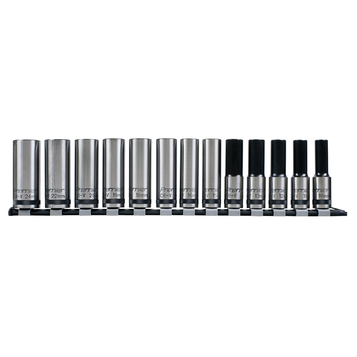 Sealey Impact 27 Pc. 1/2" Drive 6 Point Metric Socket Tray Set - SATA 1/2 Inch Impact 14 Pc. 3/8 Drive 6 Point Metric Socket Set - SATA Sealey Steckschlüssel-Set Hergestellt aus gehärtetem und vergütetem hochwertigem Chrom-Vanadium-Stahl 6142., Hochglanzpolierte Oberfläche für Korrosionsbeständigkeit. Mit speziell bearbeiteten Rillen in den Wänden der Steckdose, die den Einsatz auf bis zu 85 % abgerundeten Verbindungselementen ermöglichen. 27 Pc. 1/2" Drive 6 Point Metric Socket Tray Set - SATA 23 Pc. 1/2 Drive 6 Point Metric Socket Set - SATA Dies bietet nicht nur zusätzliche Stärke, sondern verhindert auch Schäden an abgenutzten oder rostigen Befestigungen. Socket Set 13pc 1/2Sq Drive Lock-On 6pt Metric
