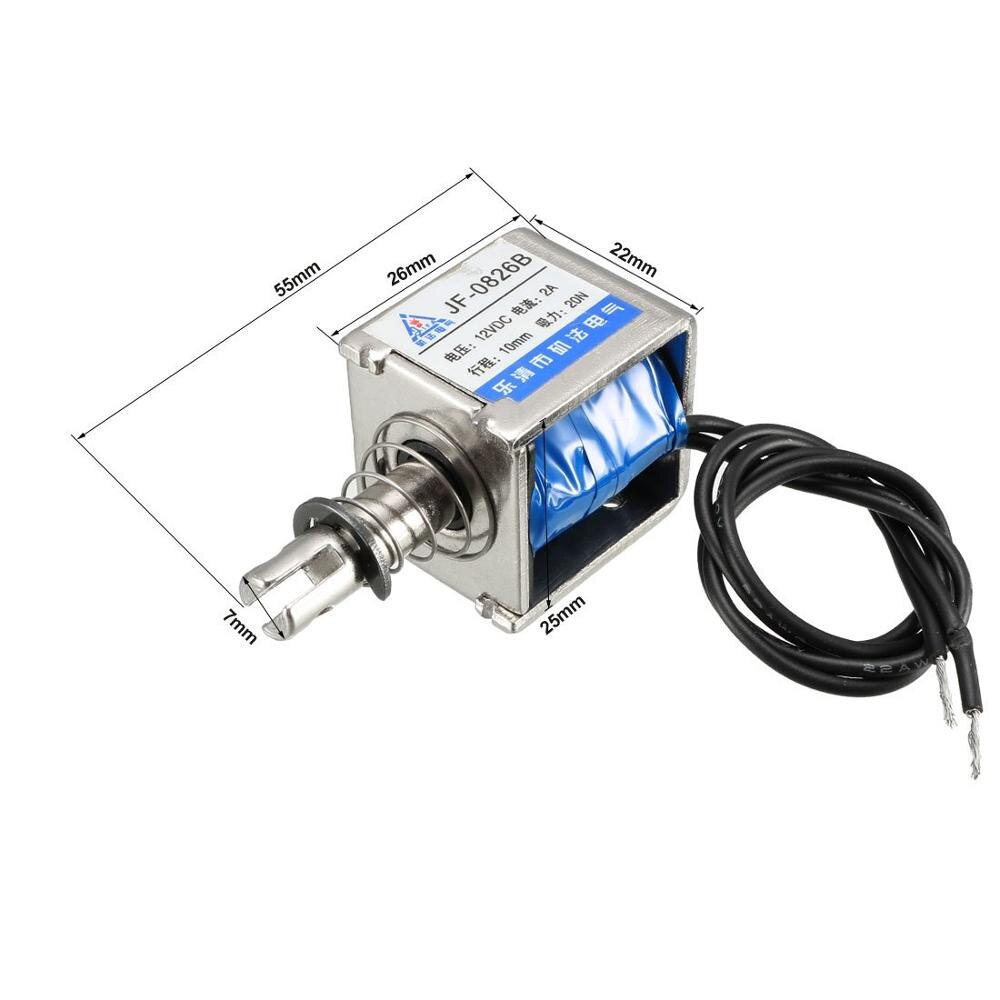 Push-Pull-Typ, Linearbewegung, Kolbenfeder-Rückkehr, DC-Magnet-Elektromagnet. Support DC 24V-Spannung, hohe Leistung, Pull-Push-Typ, lineare Bewegung, ist einfach zu installieren. JF-0826B DC6V 12V 24V 2A 10mm Hub 20N Kraft Push-Pull Typ... Pulling electromagnet 12V 20N 2kg JF-0826B Jf 0826b Solenoid JF-0826B DC6V 12V 24V 2A 10mm Hub 20N Kraft Push-Pull Typ Rahmen Jf 0826b Manual JF-0826B DC6V 12V 24V 2A 10mm Hub 20N Kraft Push-Pull Typ Rahmen Verdrahteter DC-Solenoid-Elektromagnet Magnet 1St (12V) Marke