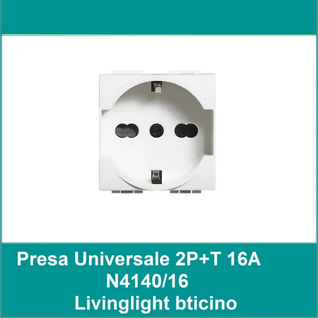 Diese zweipolige 2P+T-Steckdose mit einer Kapazität von 10/16 A bietet eine einfache und zuverlässige Installation für jede private oder berufliche Umgebung Doppelstecker Steckdose 2P+T 10/16A WEISSE STECKDOSE KOMPATIBEL MIT BTICINO AXOLUTE Steckdose Doppelstecker Schuko Steckdose 2P+T Farbe Schwarz oder Weiß 16A 250V Kompatibel mit Bticino Living Light Money Back Guarantee ensures that buyers receive the item they ordered or get their money back. Kompatibel mit Bticino Axolute: sorgt für eine problemlose Installation und perfekte Synergie mit anderen Produkten der gleichen Familie, wodurch die Integration in das bestehende elektrische System erleichtert wird Universalsteckdose passend für alle europäischen Standardstecker mit 2 Polen und 3 Polen Multistecker mit Kabel 1,5m 2 seitliche Steckdosen 10/16A 2P+E Bipass 1