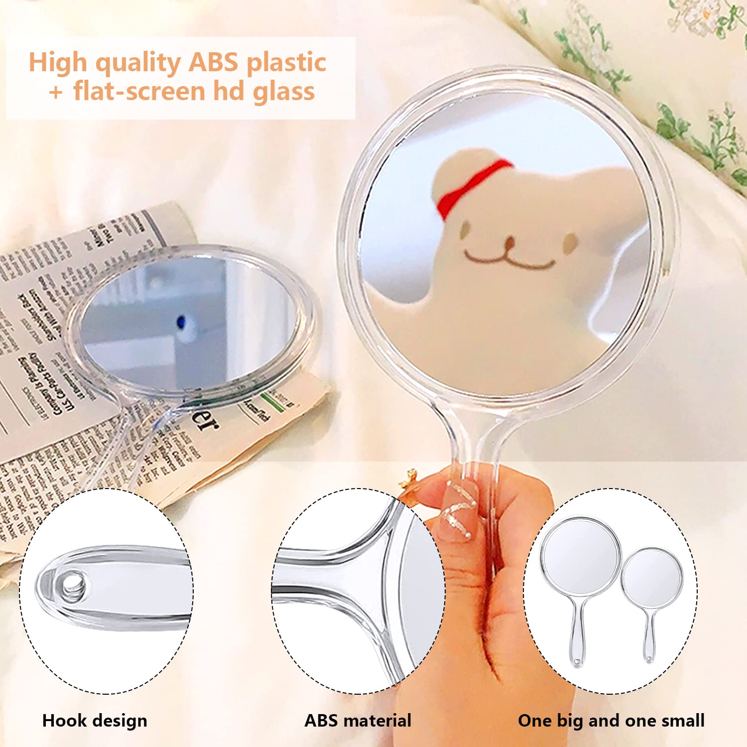 Hrlace Handspiegel Mit Griff Klein Doppelseitiger Schminkspiegel 1X/2X Vergrößerung Spiegel Tragbar Kosmetikspiegel Runde Taschenspiegel Für Tägliche Make-up Damen, Gesichtspflege Blau 1pcs