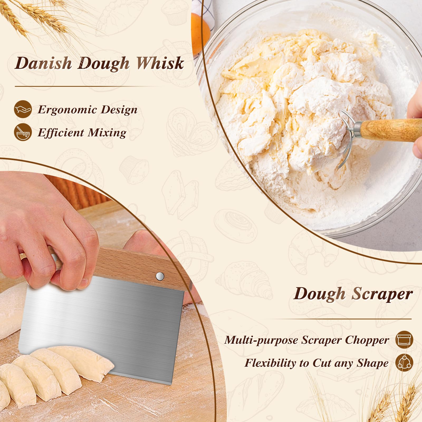 Brot Backen Brotgärkörbe, 2er-Set, 22,9 Cm, Rund Und 25,4 Cm, Oval Sauerteig Für Alle Es enthält einen 22,9 cm runden und einen 25,4 cm ovalen Sauerteigkörbe, 2 Leinentücher, 1 Silikonbürste, 1 Teigschaber, 1 Brot-Lame mit 5 zusätzlichen Klingen und Klingenabdeckung, 1 dänischer Teigbesen, 1 Mehl und Zucker. 【Kommen Sie, um das Backen zu genießen】 Das Brotbackset enthält 13 verschiedene Zubehörteile, um unterschiedliche Backbedürfnisse zu erfüllen. Dies ist ein ideales Geschenk für Anfänger und erfahrene Bäcker, was ein perfektes Backwerkzeug ist. Dieses Material ist sehr stark, langlebig und glatt, keine Risse oder Splitter, kein chemischer Geruch. Ihre Zufriedenheit steht immer an erster Stelle. effect Ovalrahmen 200 30x40 cm | Ovaler Bilderrahmen Sieb, 1 Silikon-Brotschlinge, 1 Silikonspatel, 1 Messlöffel-Set und 10 verschiedene Brotschablonen. Perfektes Geschenk und 100% garantiert: Neddie Banneton Brotgärkörbe Set kann als gutes Geschenk für Backliebhaber sein, passend für alle Niveaus. 【Leicht zu reinigen】 Egal, ob Sie den Teig direkt auf die Sauerteigkörbe legen oder auf die Liner legen, Sie müssen sich keine Sorgen um die Reinigung machen. Sie können den Spaß am Backen mit Ihrer Familie erleben. Perfekt für handwerkliches Sauerteigbrot] Die runden und ovalen Banneton-Brotgärkörbe erzeugen schöne Spiralmuster auf Ihrem Teig, was Ihrem Brot einen professionellen handwerklichen Look verleiht, ideal für Sauerteig und anderes hausgemachtes Brot Verbessertes Backzubehör – 13-teilig: Das Neddie Banneton-Brotgärkörbe-Set wurde mit 4 neuen Zubehörteilen aufgerüstet, um Backbedürfnisse besser zu erfüllen. Sie müssen keine Zeit damit verbringen, andere Accessoires zu kaufen. Das Korb-Set ist vielseitig einsetzbar und kann für eine Vielzahl von Brotrezepten verwendet werden, einschließlich Sauerteig, französisches Brot und mehr Ein komplettes Backset – 8 Werkzeuge enthalten: Das Neddie Banneton-Brotgärkörbe-Set enthält einen 22,9 cm runden und einen 25,4 cm ovalen Sauerteigkörbe, zusammen mit 12 anderen Brotbackwerkzeugen