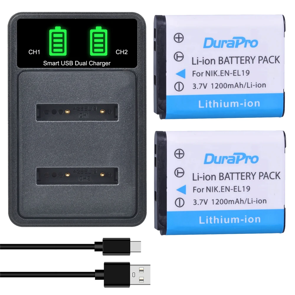2x EN-EL19, NP-BJ1 Battery + Charger For Nikon
