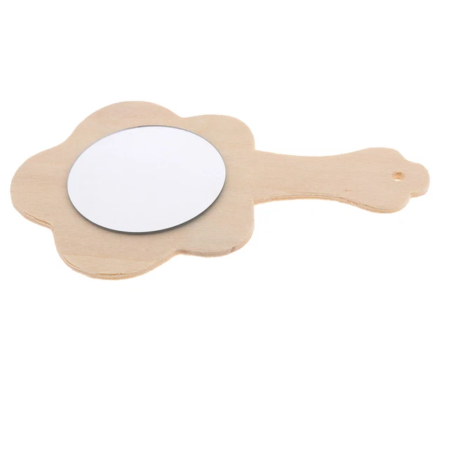 10 Stücke Handspiegel Holz Mit 3 Aufklebern, DIY Holzspiegel Zum Basteln, Mini