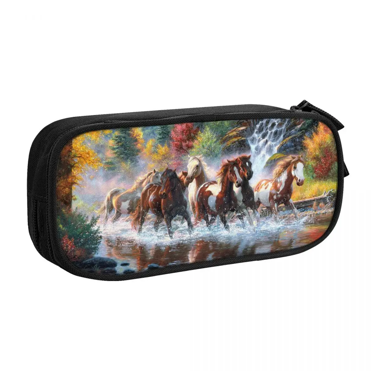 Big Capacity Pencil Case The Horse Runs Gallop On A Snowy Field 3 Compartment Pen Bag Pouch Holder Box For Office College School Portable Storage Bag For Kids