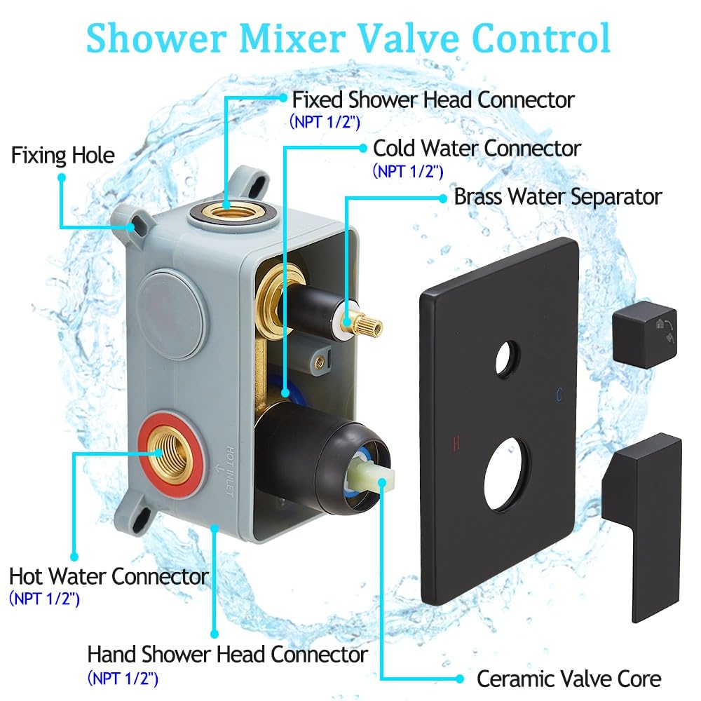TNOMS Schwarze Duscharmaturen-Sets, komplettes Luxus-Duschsystem mit 30,5 cm Hochdruck-Duschkopf, rauem Ventilkörper und Zierleiste im Lieferumfang enthalten, SA012BK Duschsystem beinhaltet: 30,5 cm Regenduschkopf [Edelstahl], Handbrause [Edelstahl], Duscharm [SUS304 Edelstahl], Brausehalter [Messing], Brauseschlauch [150 cm & PVC], grobes Vlave[Messing] Der natürliche Regen bietet Ihnen den natürlichen Kontakt des Wassers. Lieferumfang: 1 x Installationsanleitung 1 x Runder Duschkopf (20 cm Durchmesser) 1 x Runde Handbrause (12 cm Durchmesser) 1 x Edelstahl Schlauch mit Anti-Knickschutz 1 x Duschstange aus Edelstahl 1 x Thermostat 1 x Handbrausehalter 2 x Winkeladapter für die Wandmontage Dichtungen und Befestigungselemente InstallationszubehörBestellen Sie jetzt und verwandeln Sie Ihr Bad in eine Oase der Entspannung mit der perfekten Kombination aus Design und Funktionalität! Sie verfügt über eine 360-Grad-Drehfunktion, welche die flexible Einstellung des Wasserstrahls in jede gewünschte Richtung ermöglicht. Duschkopf Absperrventil T-Adapter Handbrausekopf Shunt Ventil Bad Duschkopf für das Badezimmer zu Hause, tragbarer Handbrausekopf (Silber 【Luftdruck & Genießen Sie das Bad mit TNOMS Dusche】Hochdruckluft macht den Strahl oder Spray weich und spritzt nicht während des Gebrauchs. Über ein Jahr, wenn das Produkt irgendwelche Fragen hat, kontaktieren Sie uns bitte und wir können den Ersatz an Sie senden und Sie müssen nur die Fracht tragen. GARANTIE Innerhalb eines Jahres können Sie uns bitten, das Produkt zu ersetzen, wenn unser Produkt irgendein Problem hat. Leichte Reinigung: Sowohl die Kopf- als auch die Handbrause sind mit Silikondüsen ausgestattet, die eine schnelle und mühelose Reinigung ermöglichen. Regendusche Schwarz Mattschwarzer Handbrausekopf, 3-Funktions-Handbrausekopf, Hochdruck Duscharmatur Komplettset TNOMS Duschsystem 12 Zoll Sie können poliertes Chrom und gebürstetes Nickel und mattes Schwarz wählen, die eine Messingkombination für nicht korrosiv sind. Einfache Montage: Dank klarer Maße und mitgelieferter Anleitung ist die Installation des Duschsystems schnell und problemlos. Kopfbrause mit flexibler Ausrichtung: Die rund gestaltete Kopfbrause mit einem Durchmesser von 20 cm bietet eine weitreichende und belebende Wasserabdeckung.
