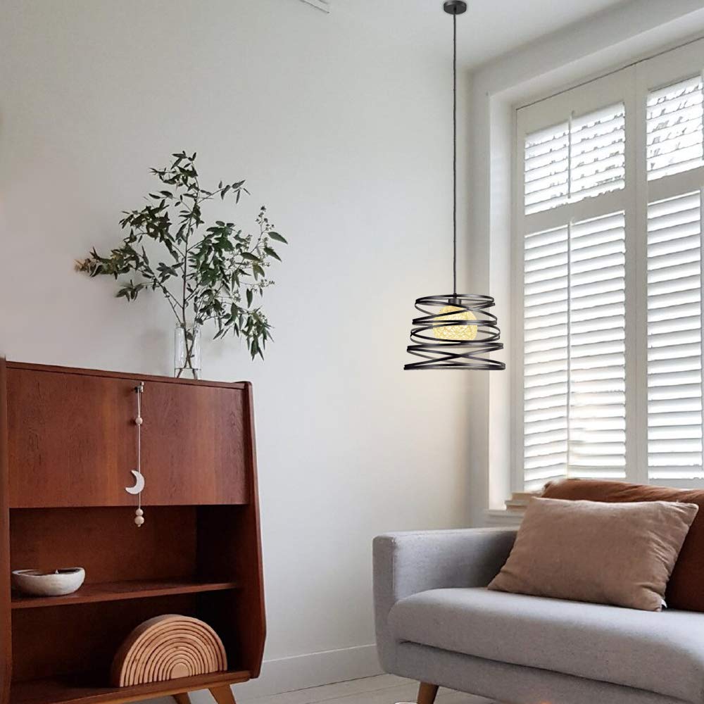 iDEGU 3-flammig Pendelleuchte Moderne Spirale Design Metall Lampenschirm E27 Vintage Lampe Industrielle Hängelampe für Schlafzimmer Wohnzimmer Küche Esszimmer (3-flammig Hängeleuchte, Schwarz, Weiß) von iDEGU. Hängelampen für das Esszimmer günstig online kaufen bei Möbel & Garten Lichtquelle: E27-Glühbirnen (Leuchtmittel nicht im Lieferumfang enthalten). Elegantes Lampen Design und Pendelleuchten modern aus Edelstahl Verleiht Ihrem Zuhause einen industriellen Vintage-Look, einfach, klassisch und traditionell. Vintage und Retro Kronleuchter: Spiral Design Lampenschirm aus Metall mit Hanfkugel Lampenschirm, ein schönes Design für die Innenbeleuchtung und Dekoration. Diese Pendelleuchte ist ideal für Schlafzimmer, Kinder, Küche, Wohnzimmer, Esszimmer, Balkon, Treppen, Dachboden, Bar, Club, Café usw. Weitere Produktdetails Die Kombination aus ihren abgerundeten Formen und dem verspielten Aufhängungssystem macht diese Leuchte zu einem wahren Kunstwerk an deiner Decke. Verfügbare Farbe: weiß, schwarz. Empfohlene Raumgröße: 8-15 m². 100 mm (verstellbar) Deckengröße: 10 x 2 cm. Stil: Retro, Vintage, modern, minimalistisch, industriell, kreativ., Material: Metall. Durchmesser: Durchmesser (oben): 25 cm, Durchmesser unten (unten): 30 cm, Höhe: 30 cm, Maße der Deckenhalterung: Ø 10 x 2 cm, Länge des Seils: 100 cm, Sie können es nach Ihren Bedürfnissen anpassen. IDEGU Vintage und moderne Pendelleuchte mit kreativem Spiral-Design, macht Ihr Zuhause etwas Vintage, aber auch modisch. Sie können wählen, ob Sie diesen Lampenschirm aus Hanf installieren oder nicht, je nach Ihren Bedürfnissen. Technische Daten: Design: Aufhängung Spiral-Design. Die beiden Modi sind sehr schön und elegant. Design-Pendelleuchte weiß Seide 30 cm 3-Licht - Plu kaufen? ✓ Versandkostenfrei ab 99€ ✓ 90 Tage Widerrufsrecht ✓ Kundenzufriedenheit 4.5/5 Warte nicht länger und verleihe deinem Raum ein stilvolles Update mit dieser atemberaubenden Pendelleuchte!
