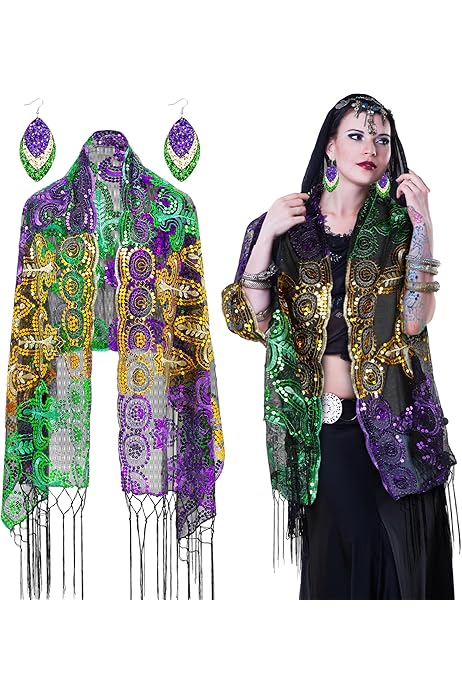 Außerdem ist der Mardi Gras Schal für Damen auch das ideale Urlaubsgeschenk. Mardi Gras Accessoires für Frauen sind klassisch und modisch, voller Festival-Vitalität und Persönlichkeit, sodass Sie sich leicht von der Masse abheben Karnevalsschal - Sie erhalten 1 Stück Mardi Gras Schal für Damen, der sich sehr gut für Ihre Karnevalsparty eignet. Ein schönes und klassisches Karnevals-Outfit für Damen ist ein Must-Have für Sie, um Ihre Persönlichkeit und Ihren Charme an Karneval zu zeigen. 【Exquisites Aussehen】 Die Karnevalsdekorationen sind mit grünen, goldenen und violetten Streifen und Quasten am Saum gestaltet. Das Karnevals-Outfit für Damen hat die passende Größe, geeignet für Menschen aller Formen und Größen, und sowohl Erwachsene als auch Kinder können den Urlaub problemlos genießen. 【Geeignete Größe】 Die Größe des Karnevalsschals beträgt 85 x 200 cm, was für die meisten Menschen geeignet ist. Darüber hinaus ist der Mardi Gras Schal für Damen das ideale Urlaubsgeschenk für Familie und Freunde Mardi Poncho panço kostüm pullu eşarp şal maskeli parti Favor aksesuarları Aliba Der Mardi Gras Schal für Damen hat die klassische Farbabstimmung von grünem, goldenem und violettem Karneval und ist mit Streifen-Design kombiniert, was nicht nur die Karnevals-Outfits festlicher macht, sondern auch einen einzigartigen Sinn für Mode verleiht, so dass Sie auf der Karnevalsparty glänzen können. Ob an Geburtstagen, Festivals oder anderen besonderen Anlässen, die Karnevals-Outfits können den Beschenkten Überraschungen und Freude bereiten. Sie können den Mardi Gras Schal für Frauen als Schal um den Hals wickeln oder das Karnevals-Outfit für Frauen als Schal tragen. Die Vielseitigkeit ermöglicht es Ihnen, Ihre Persönlichkeit und Ihren Stil bei verschiedenen Anlässen zu zeigen. Pailletten Jacke Cozypower 3 Pcs Mardi Gras Shawl Scarf Purple Top Hat 20er Jahre Kostüm Damen