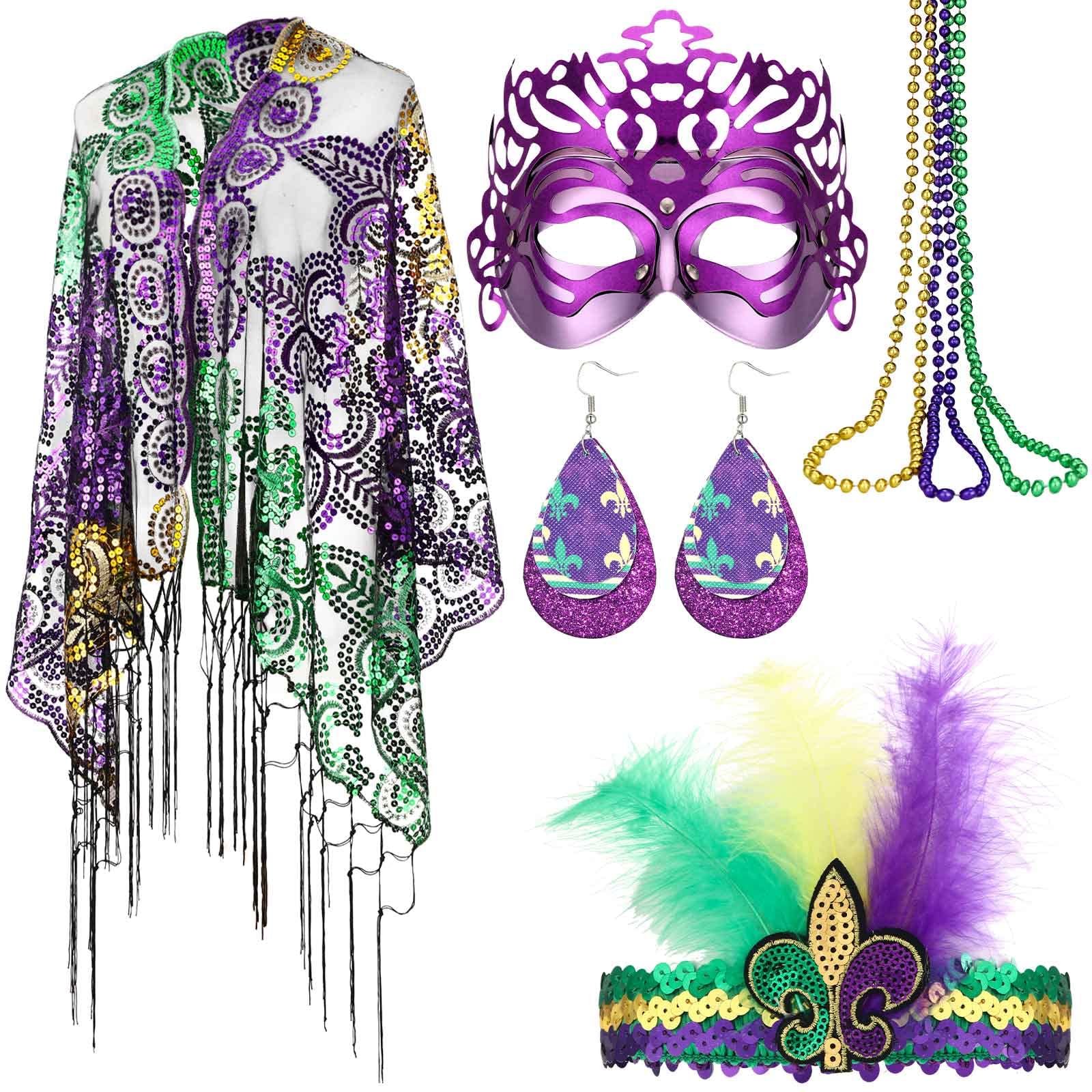 Cozypower 3 Pcs Mardi Gras Shawl Scarf Purple Top Hat