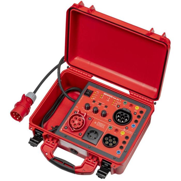BENNING EV 3-2 ist für die Prüfung von Ladestationen gemäß DIN EN / IEC 61851-1 (VDE 0122-1) der Ladebetriebsart „Mode 3“ vorgesehen und besitzt einen Typ-2-Steckverbinder gemäß IEC / EN 62196., BENNING EV 3-2 stellt den sicheren Kontakt zum BENNING Installationsprüfgerät her und löst durch Simulation eines Elektrofahrzeugs den Ladevorgang der Ladestation aus. Control Pilot (CP) simuliert den Fahrzeugstatus A, B,C, D und E (Kurzschluss zwischen CP-PE) Separate Phasenanzeige durch drei LEDs zur einfachen Spannungsüberprüfung Überprüfung des EVSE-Verriegelungssystem ab Status B (Freigabe des Ladekabels wird blockiert) Prüfsteckdose und 4 mm Buchsen für die einfache Verbindung mit einem Installationsprüfgerät Prüfen von E-Ladestationen auch bei fest angeschlossenem Ladekabel BENNING EV 3-2 ist ein Messadapter speziell für die Prüfung von E-Ladestationen in Kombination mit einem geeigneten Installationsprüfgerät. Wallboxtester und Messadapter zur schnellen Funktions- und Sicherheitsprüfung von 1-phasigen und 3-phasigen EV-Ladestationen Der BENNING EV 3-1 erm&oum Adapter BENNING 044169 Messadapter Prfg. EVSE-Ladestationen Wallboxen Ladebetriebsart 3 Phase PP CP BENNING EV 3-2 Verpackungseinheit:1ST – GmbH Typ 2 Auf Schuko Proximity Pilot (PP) überprüft die Codierung der Ladekabel zur Ladestrombegrenzung Messadapter für 1-phasige Verbraucher 16 A CEE-Kupplung zur Messung von RPE, RISO und IEA Messadapter Art.-Nr. 044143 Tec Prüfgeräte - Installationstester - Messgeräte Der Messadapter BENNING EV 3-2 ermöglicht mit dem BENNING IT 130 Installationsprüfgerät Sicherheits- und Funktionsprüfungen an bestimmten Ladestationen für Elektrofahrzeuge gemäß DIN VDE 0100-600 (IEC 60364-6) und DIN VDE 0105-100 (EN 50110) durchzuführen