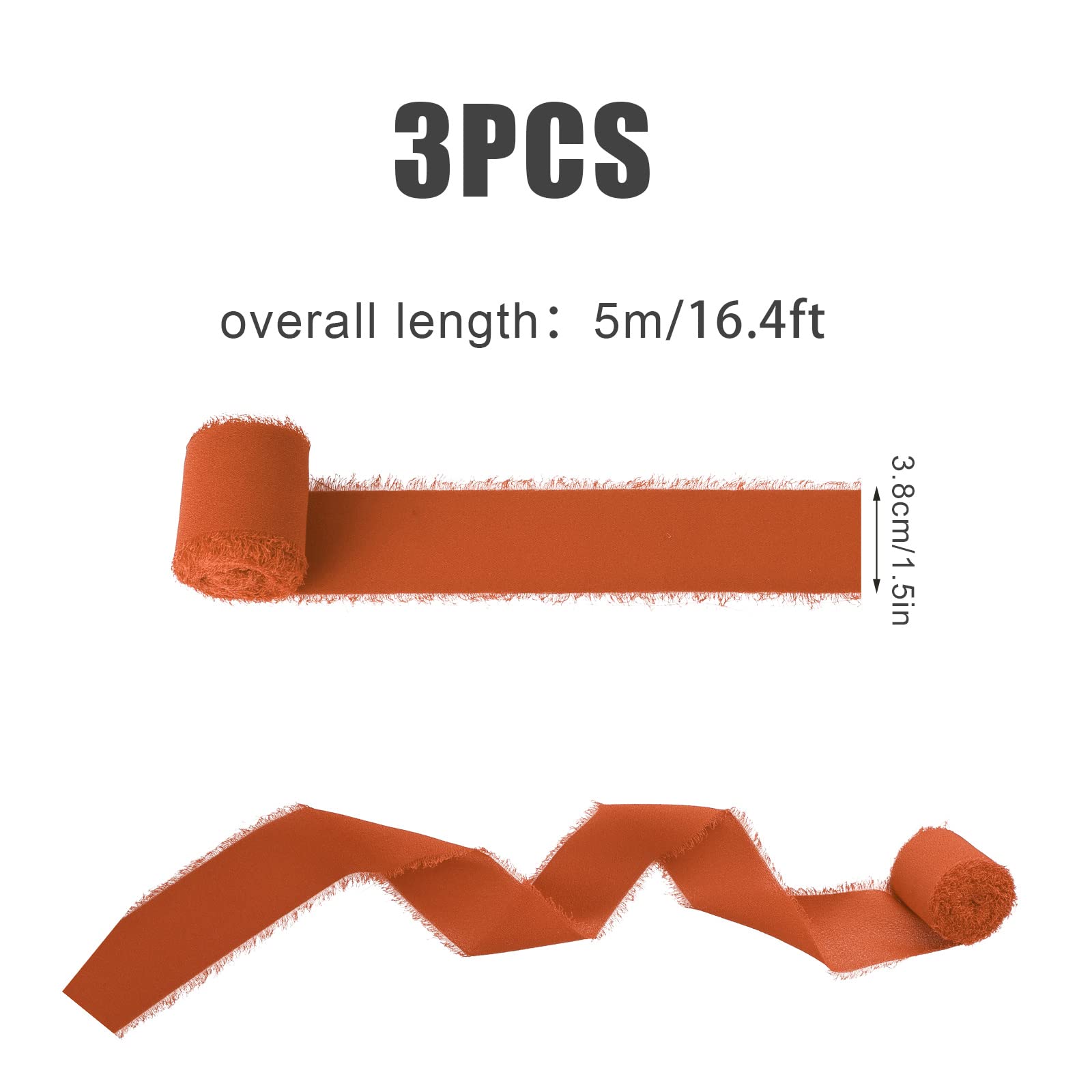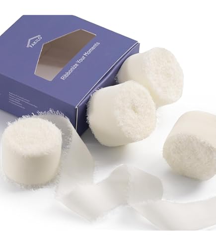 KINBOM 3 Rollen Chiffonband Weiß, 3,8cm X 5m Handgefertigt Fransen Geschenkband Seiden Hintergrunddekoration Schleifenband Weiß Für Hochzeit Weihnachtsatmosphäre