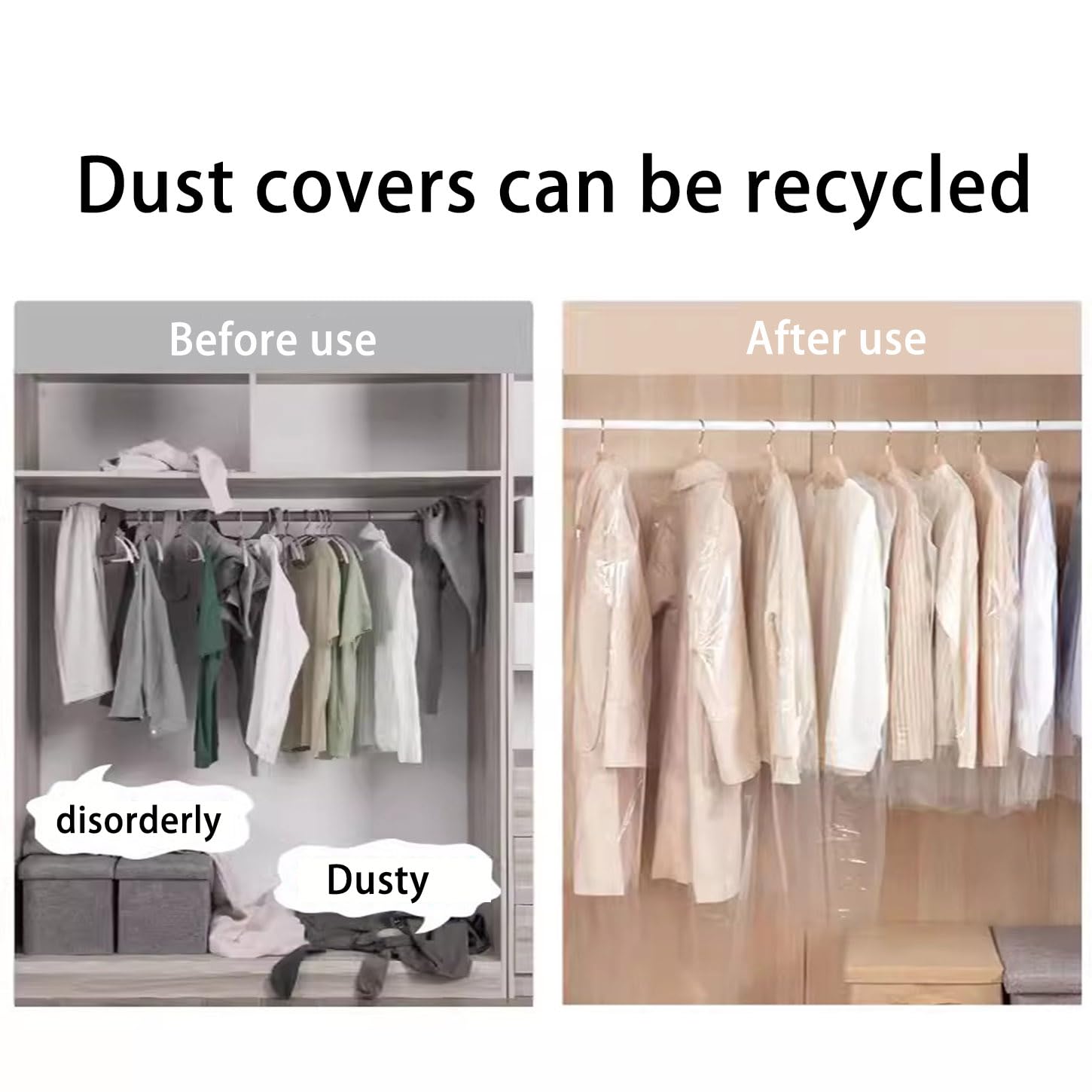 30 Stück Kunststoff Anzugtasche, Transparente Kleidersäcke Staubdichter Kleiderschutz