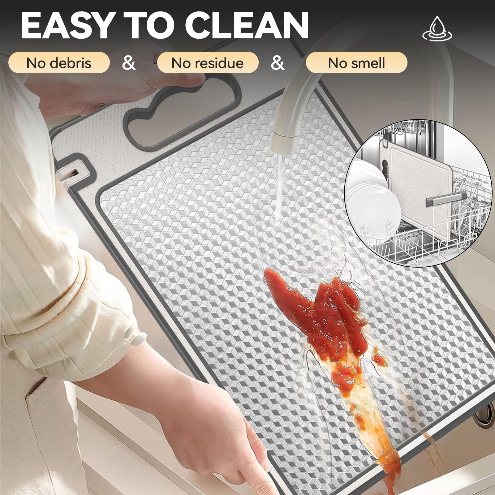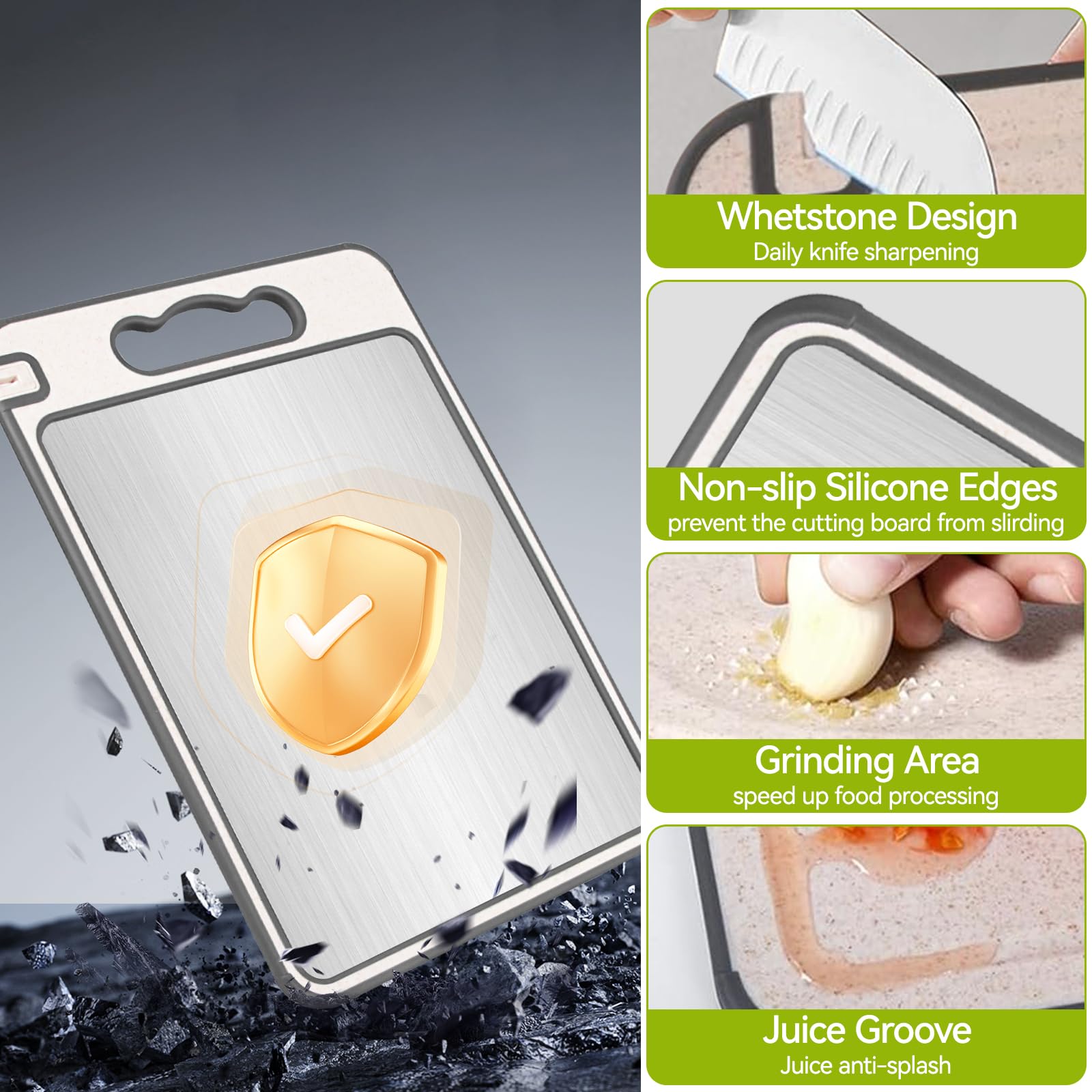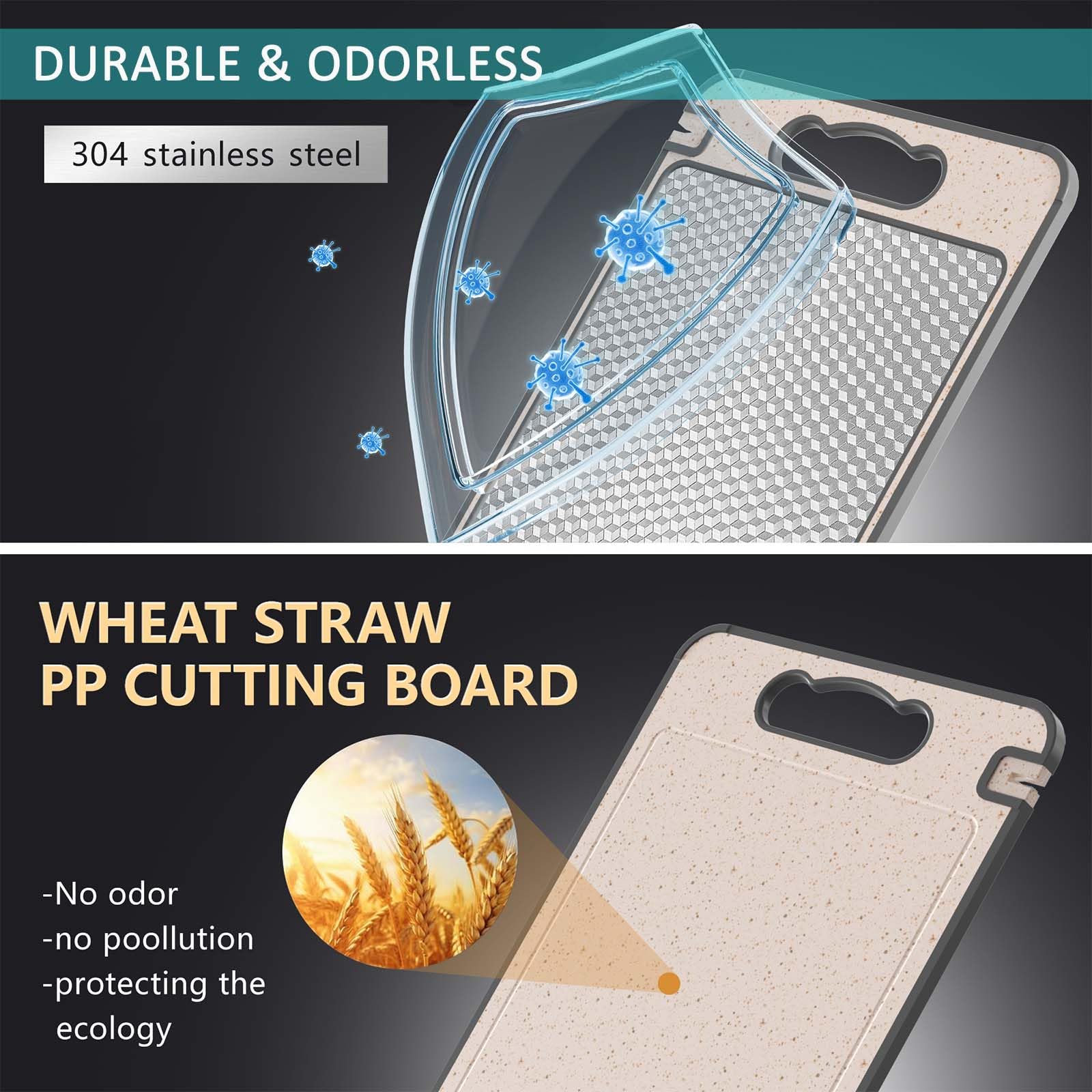【EINFACH ZU REINIGEN UND AUFZUBEWAHREN】: Beide Seiten sind antihaftbeschichtet und nehmen keine Gerüche an. Die andere Seite besteht aus hochwertigem lebensmittelechtem Weizenstroh-PP-Material und eignet sich zum Schneiden von Gemüse und Obst. Das leichte Design dieses Schneidebretts erleichtert die Zubereitung von Speisen und eignet sich für die Verarbeitung von Fleisch, Gemüse, Obst oder Meeresfrüchten in der Küche. 2 in 1 Doppelseitiges Design]- Unser Edelstahl Schneidebrett hat ein doppelseitiges Design mit einer Seite aus 304 Edelstahl für rohes Fleisch und die andere Seite aus Stroh-PP für Gemüse und Obst, verhindert effektiv das Vermischen von Aromen, optimiert so die Kücheneffizienz Es hält hoher Beanspruchung stand, reißt nicht, verfärbt sich nicht und nimmt keine Gerüche an. Es lässt sich leicht mit der Hand oder in der Spülmaschine reinigen und ist leicht zu tragen oder aufzuhängen. Es eignet sich auch hervorragend zum Verarbeiten von Gemüse, Zubereiten von Sandwiches, Zubereiten von Fleisch usw. 【MULTIFUNKTIONALES DESIGN】: Dieses Küchenschneidebrett verfügt über eine Messerschärfung, einen Schleifbereich und integrierte Rillen. Es lässt sich auch leicht zum Picknick oder Camping mitnehmen. Weizenstroh Schneidebretter Rutschfeste Die integrierten Rillen an der Kante fangen Flüssigkeiten auf und halten die Arbeitsplatte sauber. Verschmelzung Perseus So viele küchenbrett Machu Picchu Rahmen Notwendigkeiten Es ist robust und langlebig und verlängert die Lebensdauer des Schneidebretts. Rutschfestes und sicheres Schneiden Verhindert effektiv das Abrutschen beim Schneiden. 【DOPPELSEITIGES SCHNEIDEBRETT】: Unser doppelseitiges Schneidebrett besteht auf der einen Seite aus lebensmittelechtem 304 Edelstahl und eignet sich besonders zum Schneiden von Fleisch. Langlebig & Robust – Ideal für den täglichen Gebrauch und Outdoor-Abenteuer. Unser Schneidebrett eignet sich für verschiedene Anlässe: Ob Sie Tortenböden ausrollen, Teig kneten, Brot schneiden oder Gemüse schneiden – unser Schneidebrett ist allgegenwärtig. Die Oberfläche des Edelstahl-Schneidebretts ist geriffelt, um die Bildung von Ablagerungen und Rillen beim Schneiden von Lebensmitteln zu reduzieren, Flüssigkeiten aufzunehmen und Gerüche zu vermeiden, die die Gesundheit beeinträchtigen. Keine Kreuzkontamination, geruchlos, und ausgestattet mit einem eingebauten Mahlwerk und Schärfer für effiziente Lebensmittelzubereitung. Ungiftiges Schneidebrett Ordentlich & Hygienisch – Hält Ihre Küche sauber und ordentlich. Keine Kreuzkontamination, gesund und geruchsneutral. 304 Edelstahl Schneidebrett, Doppelseitiges Schneidebrett für die Küche, Ungiftige Schneidebretter Weizenstroh mit Groov, Kratzfestes Mesh Design für die Getrennte Handhabung von Fleisch und Gemüse von MARUKO. Schöner Wohnen günstig online kaufen bei Möbel & Garten Nach dem Schneiden von Fleisch oder Gemüse können Sie es mit Wasser abspülen oder in die Spülmaschine geben, um es sauber zu halten. Es erfüllt alle Ihre Anforderungen bei der Lebensmittelzubereitung.