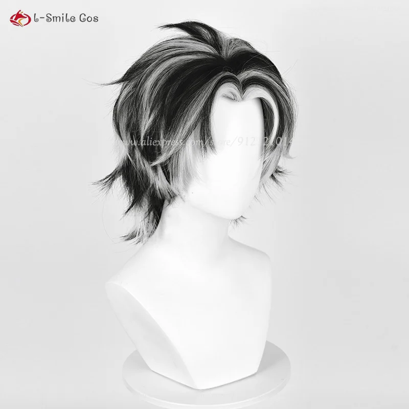 Anime Kotaro Bokuto Cosplay Perücke Silber Weiß Schwarz 30cm Kurze Perücke Hitzebeständige Synthetische Haare Halloween Party Perücken