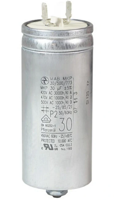 MKP - Kondensator 30uF, Motorkondensator 30,0µF 450VAC , Verwendbar Als Betriebskondensator Oder Anlaufkondensator Aus Selbstheilender Metallisierter Polypropylenfolie
