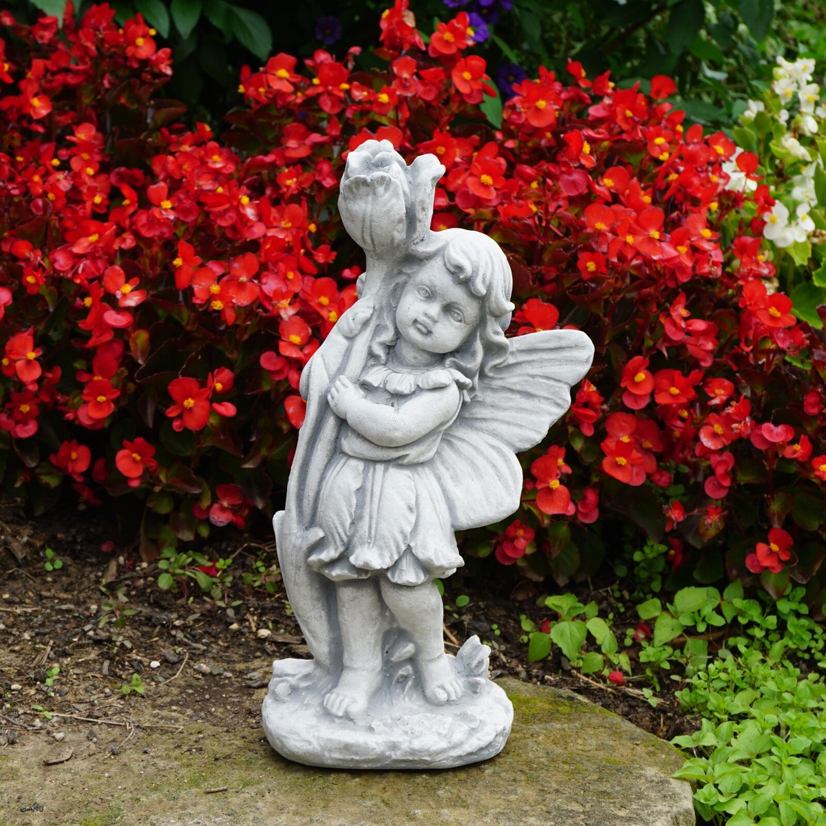 Fee Elfe Mit Rose Steinfigur 32 Cm 3 Kg Grau Weißbeton