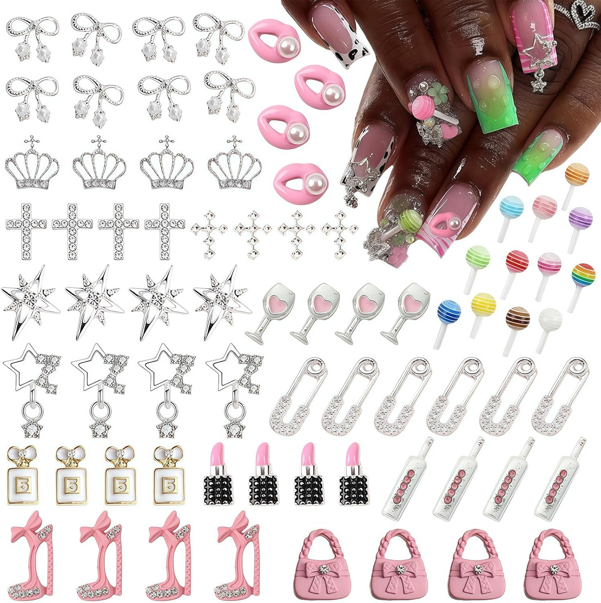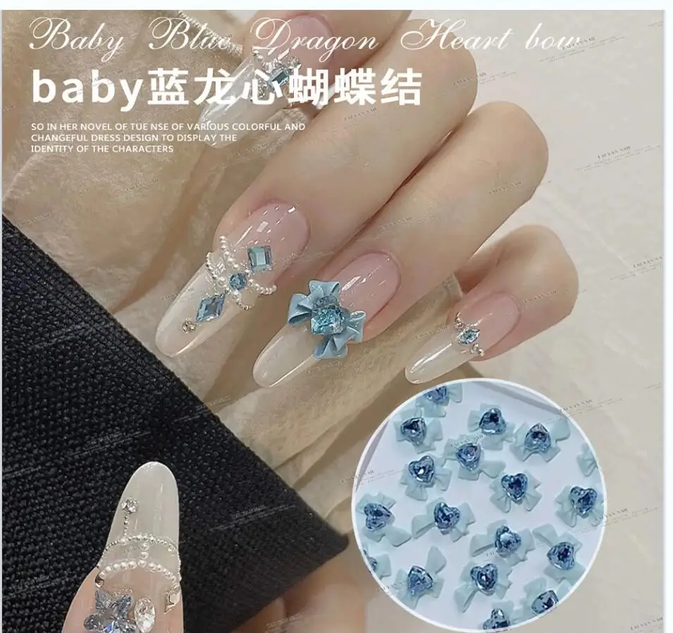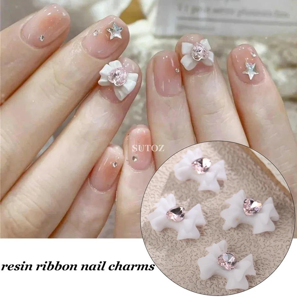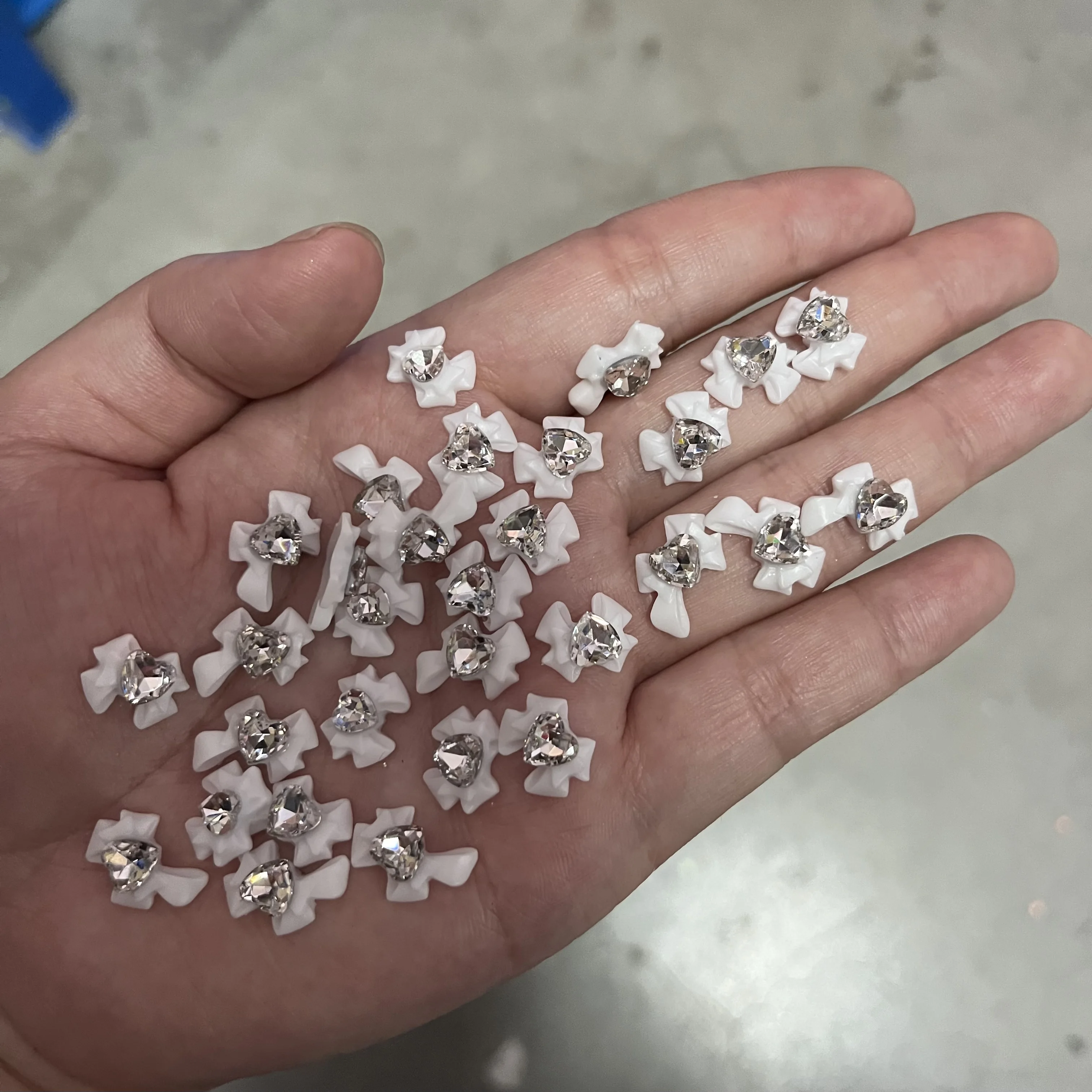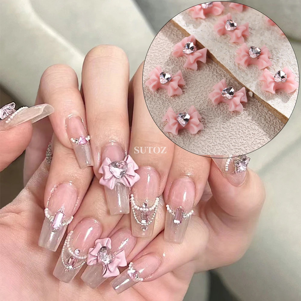 32PCS Bogen Nagel Charms 3D Silber Herz Form Nail Art Charm Mit Rosa