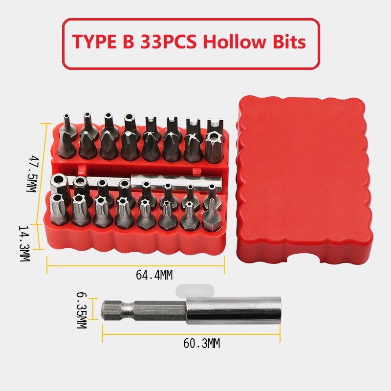 9 Bit x Torx mit Bohrung Innen , 12 Bit Sechskant , 4 Bit tri-ala , 3 Bit Kreuz spezielle , 4 besondere Slotted Bits Security Tamper Proof Bit Set 33 Pc Security Bit Set ZU VERKAUFEN! - DE Security Torx Bit Set