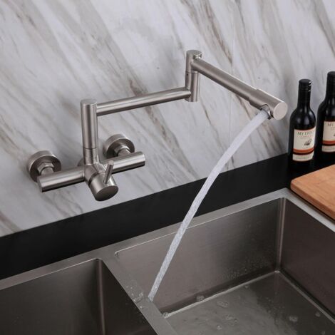Drehbarer Wasserhahn Zweigriff Küchenarmatur Wandmontage - Chrom, 360° Drehbar, Für Spüle Wandarmatur Küche