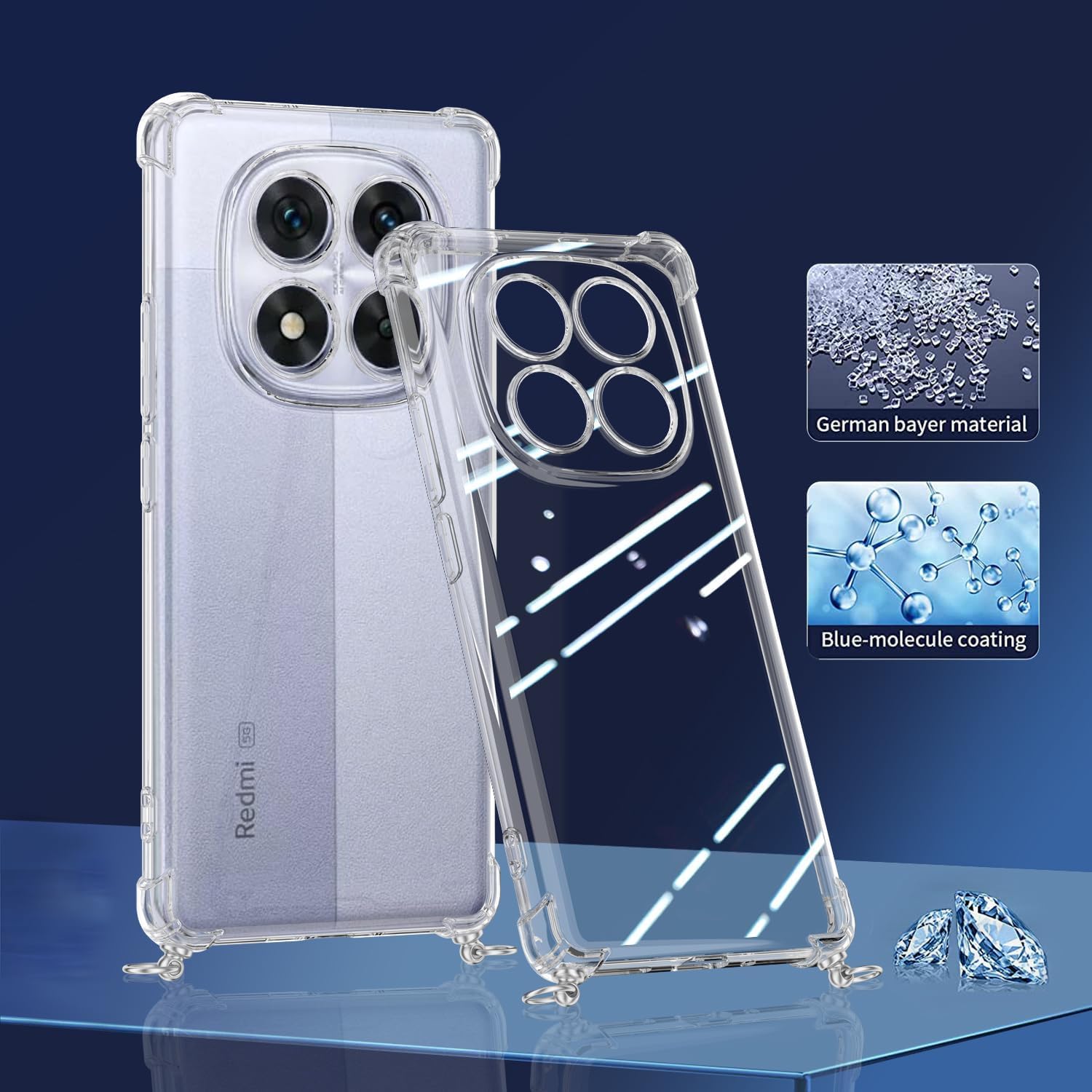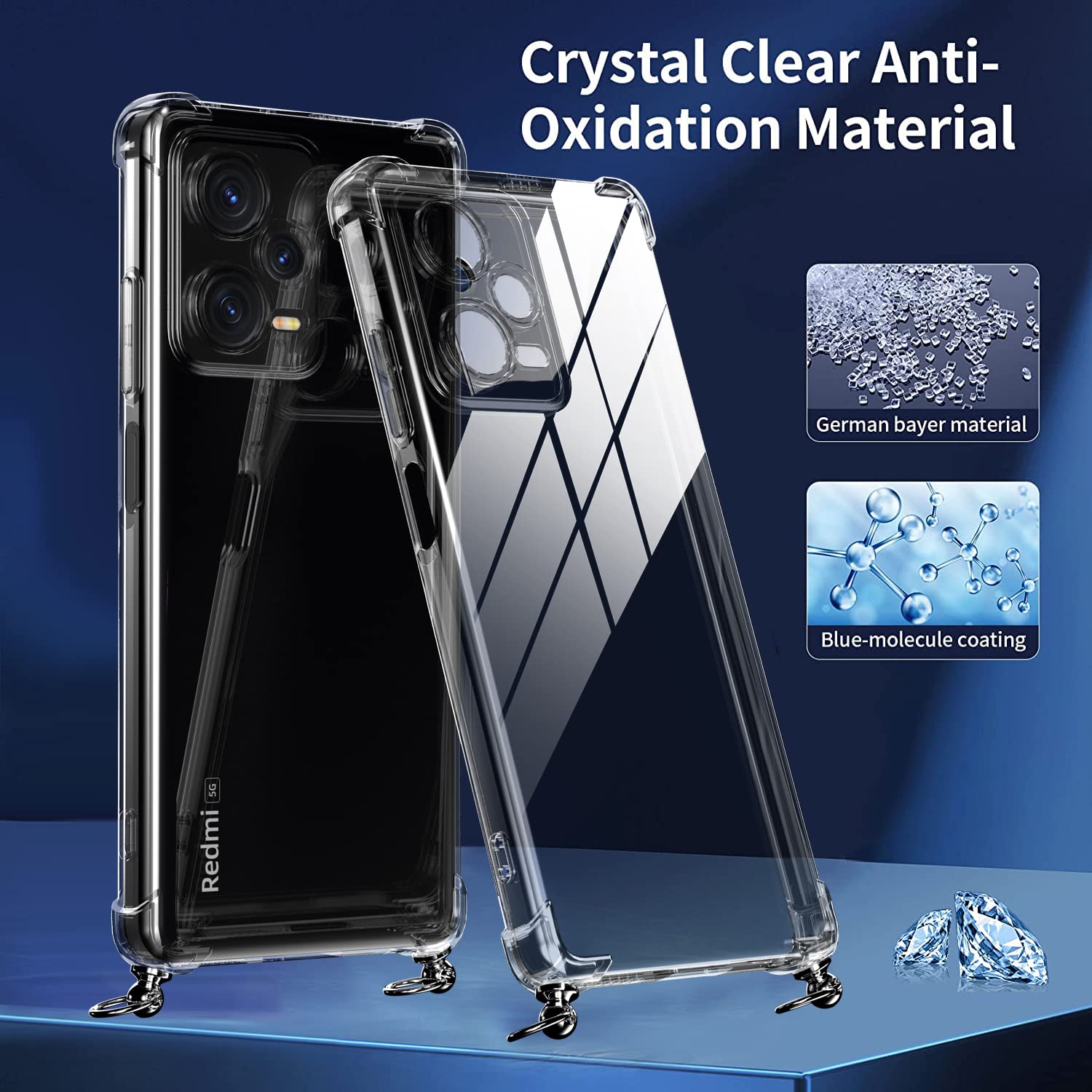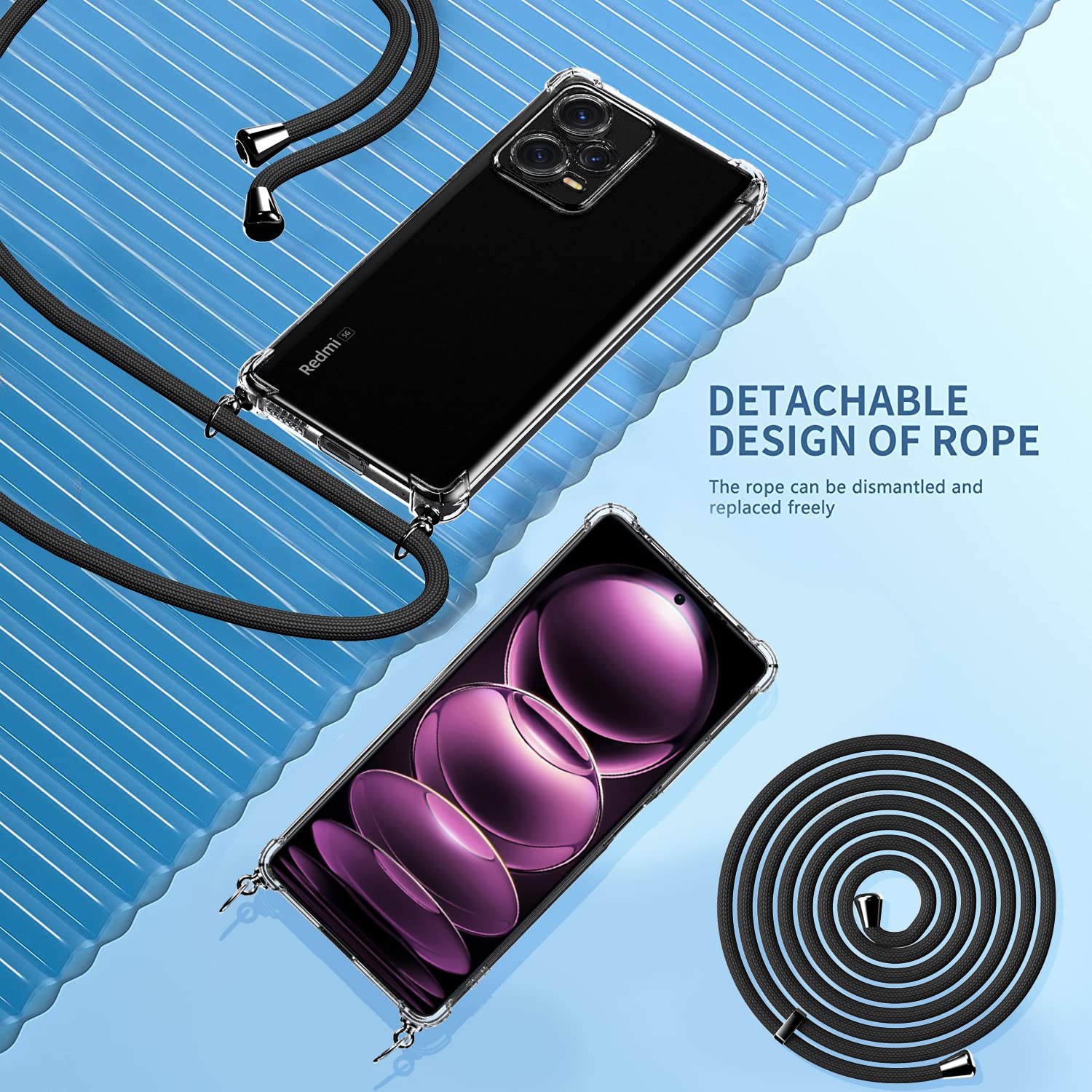 360 Grad Handyhülle Handykette Für Redmi Note 12 Pro 5G/Poco X5 Pro,Necklace Silikon TPU Fullbody Schutzhülle Mit Integriertem Displayschutz Transparent Stoßfest Hülle Mit Band Zum Umhängen - Rosa