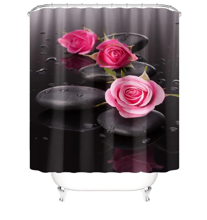 3D-Druck, Rote Rose, Badezimmer-Duschvorhänge, Blumen, Romantische Liebe, Badvorhang, Wasserdichter Polyester-Gewebe-Vorhang, Bad-Bildschirm-Dekor Mit 12 Haken, 200 X 240 Cm (79 X 94 Zoll