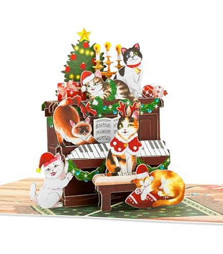 Die Geschenkkartenhalter sind Pop-Up-Karten mit gestanzten Schlitzen. Machen Sie eine Nachricht zu etwas ganz Besonderem, indem Sie Ihre eigene Geschenkkarte einlegen Vollfarbig bedruckt und mit Glitzer veredelt., Weißer Umschlag 13 cm L x 13 cm B Machen Sie eine Nachricht zu etwas ganz Besonderem, indem Sie Ihre eigene Geschenkkarte einlegen. Weihnachtskarte Pop Up 3D Greeting Card - CHRISTMAS MISCHIEF - Christmas By Up With Weihnachtskarten Pop Up Christmas Mischief Pop- up Greeting Card by Up With Paper. Kitties Playing in a Christmas tree