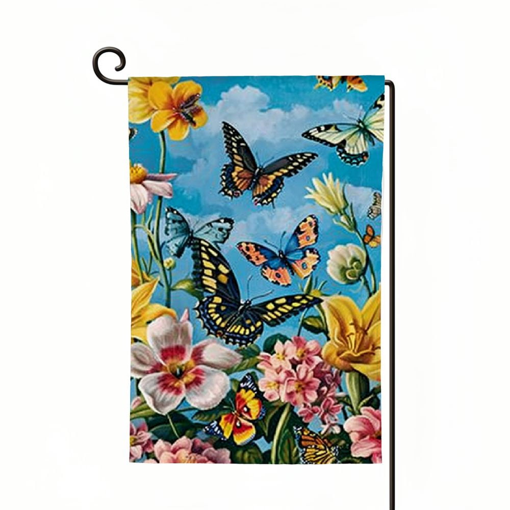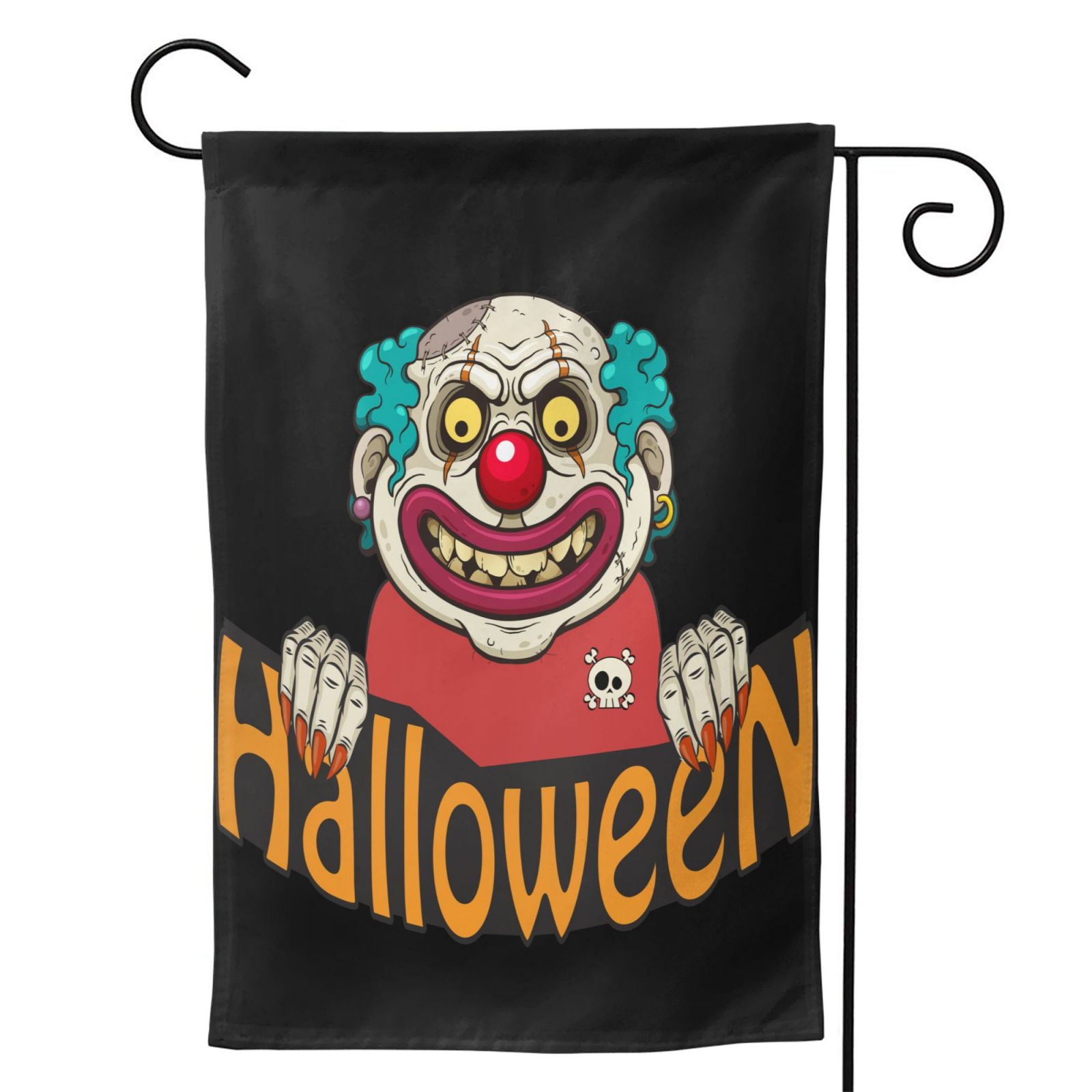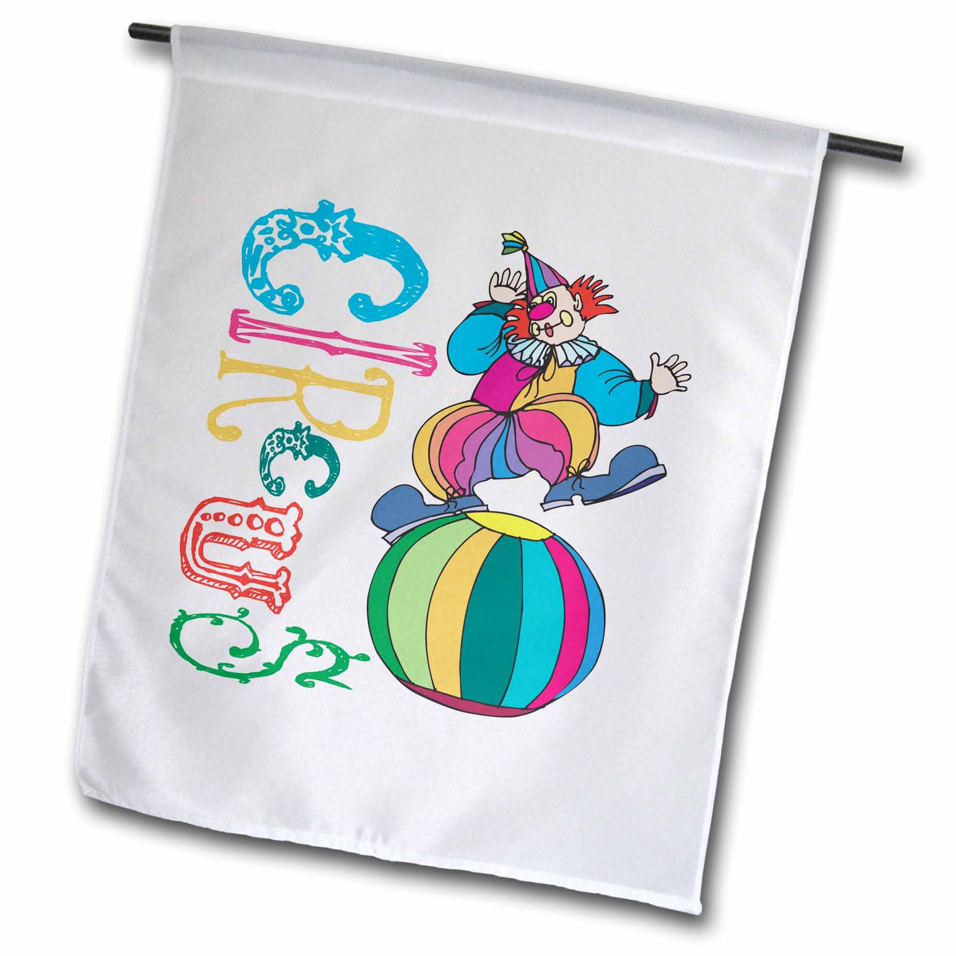 Made of 100% single-ply semi-opaque polyester Hanging hardware/pole not included. Hang using a pole, on the wall, ceiling, banister, and door or anywhere you feel the need to add a splash of color. Overall dimension (in inches): 12 x 18; image size (in inches): 10 x 10 Image is printed on one side, with a lighter image visible on the backside 3dRose FL_11155_1 Clown Garden Flag, 12 By 18-Inch