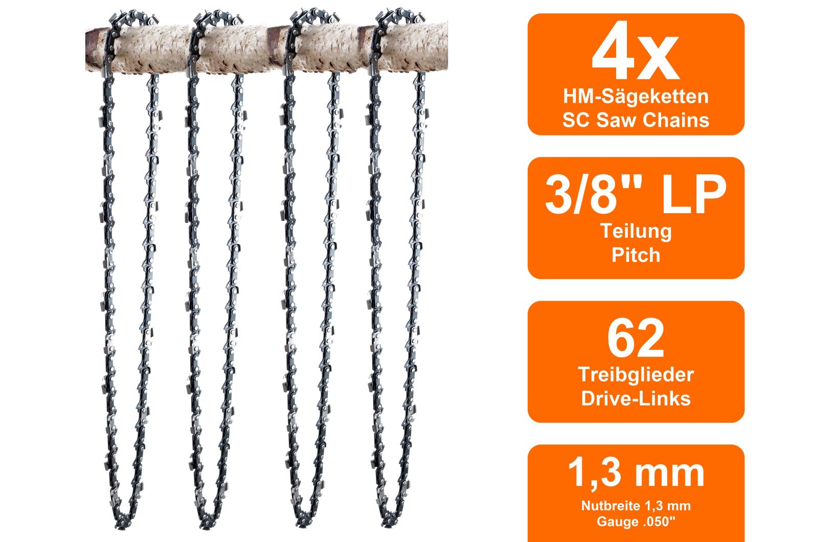 3x Sägekette Kettensäge 45cm 1,3mm 3/8" 62TG Für Variolux V-BKS 45