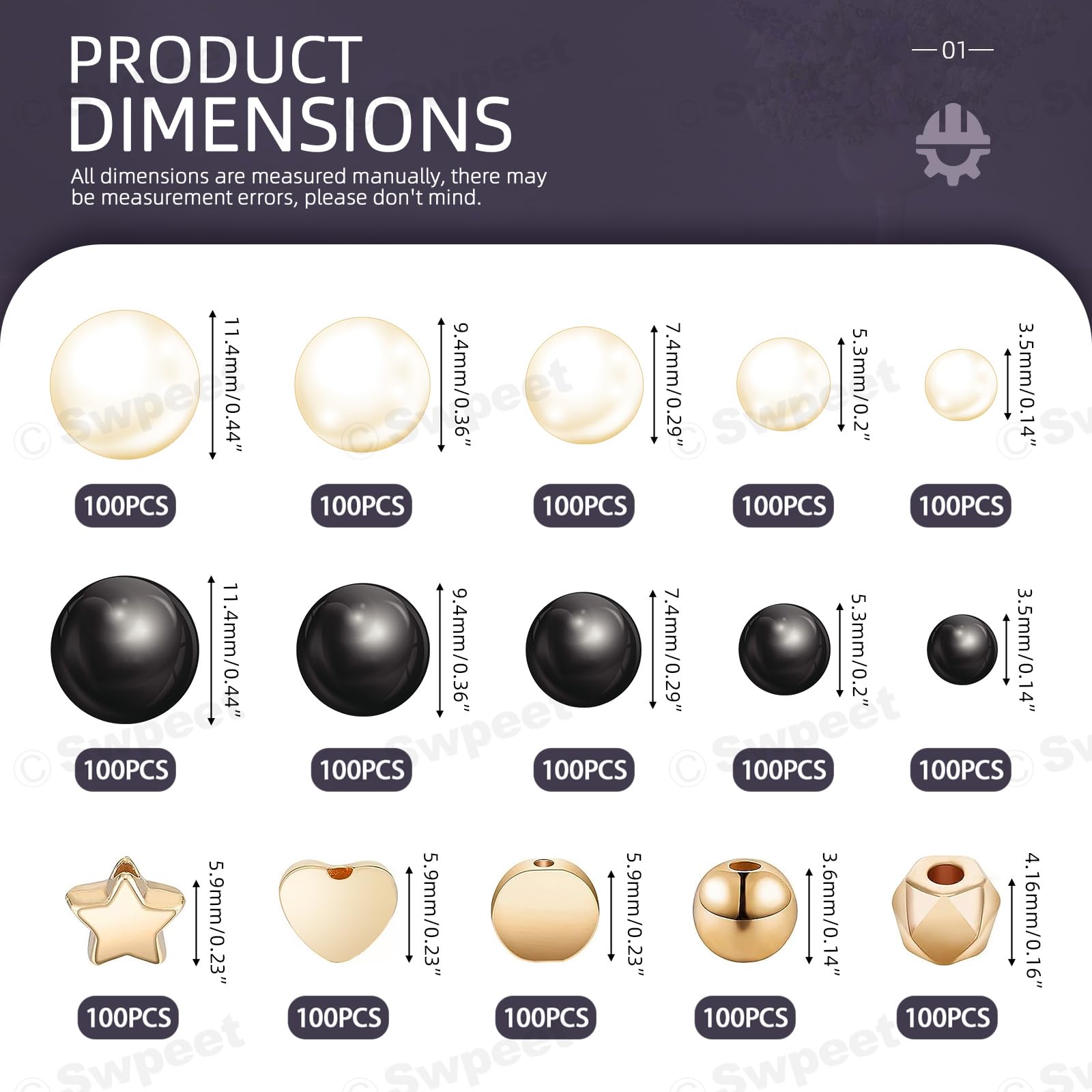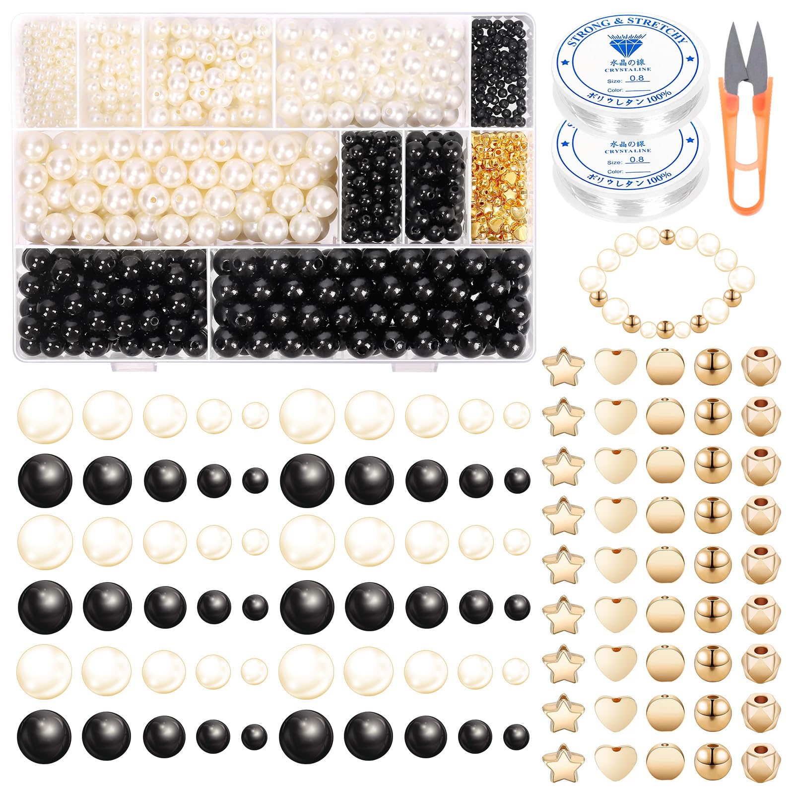 Swpeet 753Pcs 2 Farben 4/6/8/10/12mm Perlenarmband Herstellung Kit