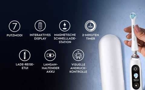 Wir haben Produkte im Bereich "Ultraschall Zahnbürste Oral B" miteinander verglichen und Empfehlungen für Dich zusammengestellt. Hier findest Du die Top 15 im Erlebe jetzt ein Zahnputzerlebnis, das begeistert! DIE SMARTE ZAHNBÜRSTE VON ORAL-B mit interaktivem Farbdisplay zur Auswahl der 7 Putzprogramme, Tracking der Putzzeit, Erinnerung an den Bürstenkopfwechsel und Anzeige zum Akkustand LÄNGER GUTE MUNDGESUNDHEIT - 8 von 10 Menschen konnten dank PERSONALISIERTER iO PUTZANLEITUNG nach nur einer Woche besser putzen INHALT: Oral-B iO Zahnbürste inkl 1 Aufsteckbürste (Ultimative Reinigung), Lade-Reise-Etui (Luxe Edition), Aufsteckbürsten-Etui, Ladestation, Aufbewahrungstasche Mua Oral-B iO Series 9 Elektrische Zahnbürste - Electric Toothbrush, Inkl. 3 Aufsteckbürsten, Lade-Reise-Etui, Schnellladestation - 7 Modi für Zahnpflege, Zahnbürste Elektrisch, Designed by Braun, Schwarz trên Amazon Đức chính hãng 2025 Die Oral-B iO Series 9 kann im Test voll überzeugen. Die oszillierend-rotierende Zahnbürste säubert die Zähne zuverlässig und ist auch in der Handhabung tadellos MAXIMAL SAUBERE ZÄHNE dank unserer INNOVATIVSTEN KI-POSITIONSERKENNUNG mit 3D-Tracking der Putzbewegungen in 16 Zonen Anschrift Hersteller/Importeur Sulzbacher Str., 40, 65823 Schwalbach a., Ts., , Deutschland Außerhalb der Reichweite von Kindern aufbewahren. Die Zahnbürste begrüßt dich am Morgenund schenkt dir nach dem Putzvorgang ein Lächeln für ausgezeichnete Ergebnisse. einer Handzahnbürste - GUT GETESTET von Stiftung Warentest Das innovative, magnetische Antriebssystem der Oral-B iO liefert Energie punktgenau an die Borstenspitzen, die mit sanften Mikrovibrationen von Zahn zu Zahn gleiten, um ein effektives und angenehmes Putzerlebnis zu erzielen. Genieße jeden Tag ein frisches Gefühl wie vom Zahnarzt! Der visuelle Timer gibt Auskunft über die empfohlene Putzzeit von 2 Minuten. Ein interaktives Display ermöglicht eine einfache Navigation durch die verschiedenen Funktionen und Einstellungen der Bürste. Ultraschall Zahnbürste Oral B – Die 15 besten Produkte im Vergleich Wichtig: Es handelt sich um das Mod