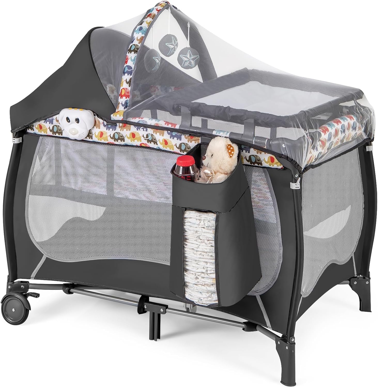 4 In 1 Babybett Tragbares Beistellbett Mit Faltbaren Matratze & Wickeltisch Reisebett Stubenwagen