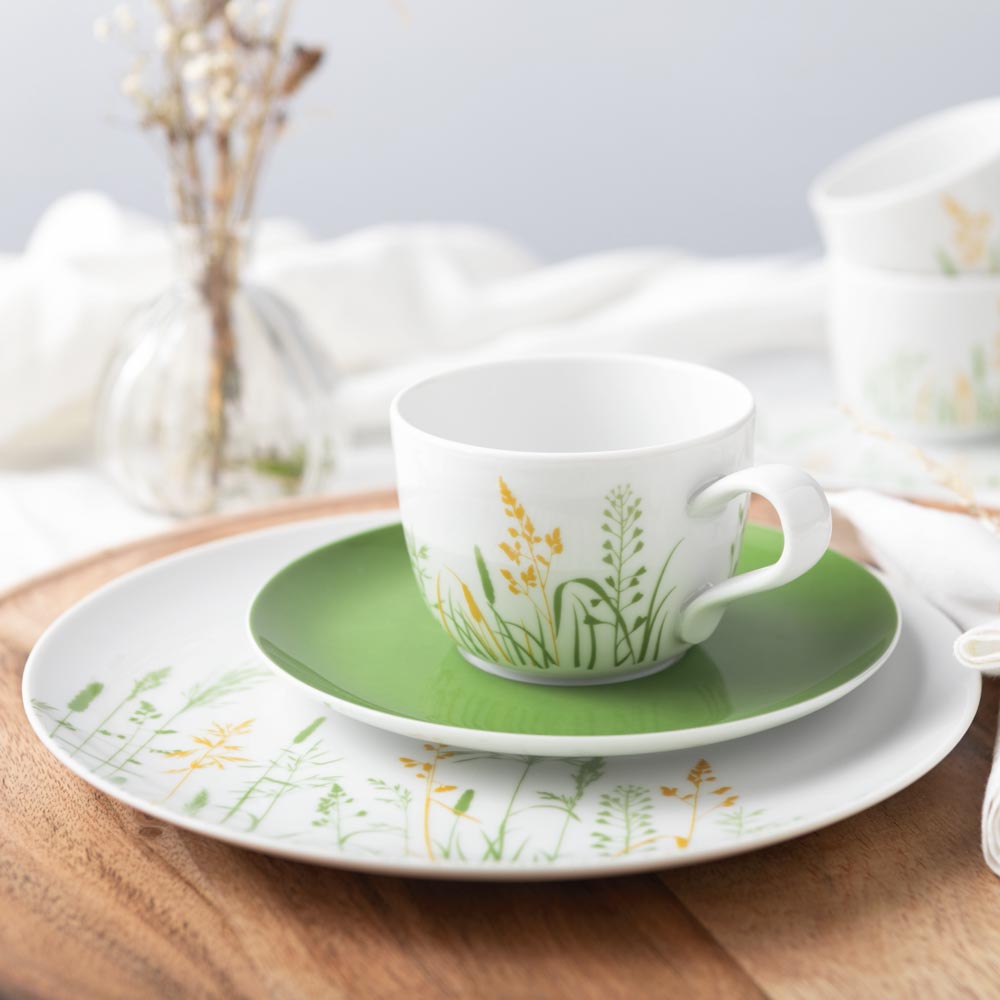 THUN, Set Mit 4 Kaffeetassen Aus Porzellan Mit Blumenmotiv, Inspiriert Von Südtirol, Linie Happy Country, Fassungsvermögen 10,5 Ml, Untertasse 12 Cm