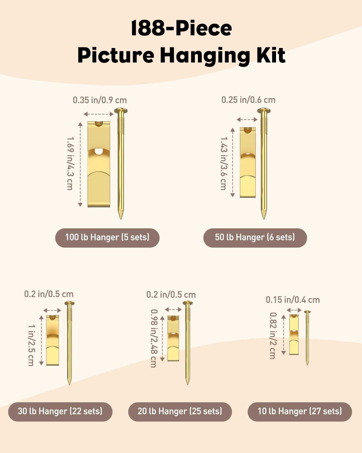 Uniclife 188-teiliges Bildaufhängeset, 4 Kg, 9 Kg, 13 Kg, 22 Kg, 45 Kg