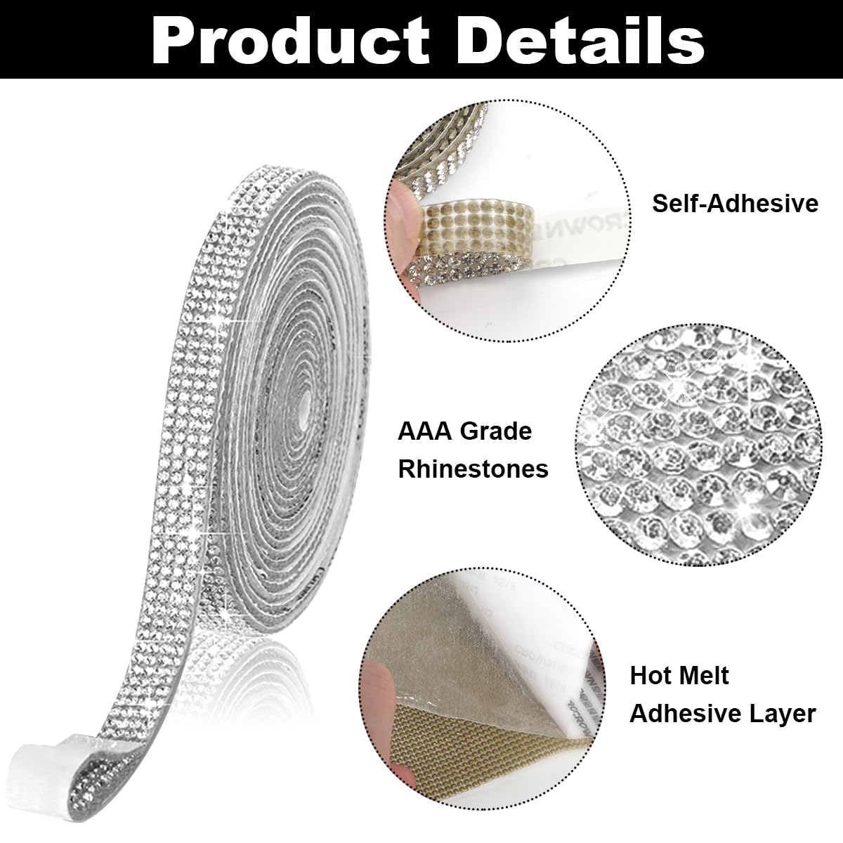 Nuyoach 4 Rollen Diamantband Selbstklebend Kristall Strass Diamant Band