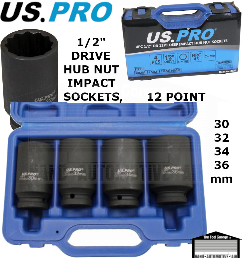 US Pro 4 Stck. 1/2"" Dr 12pt Deep Impact Nabe Mutter Steckdosen 30 32