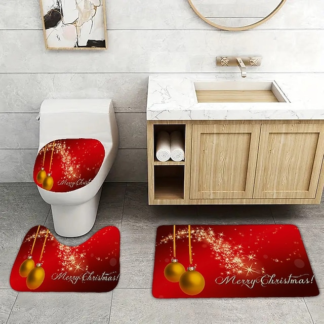 Poedist 4 Teiliges Weihnachts Badezimmer Dekor Set, Weihnachts