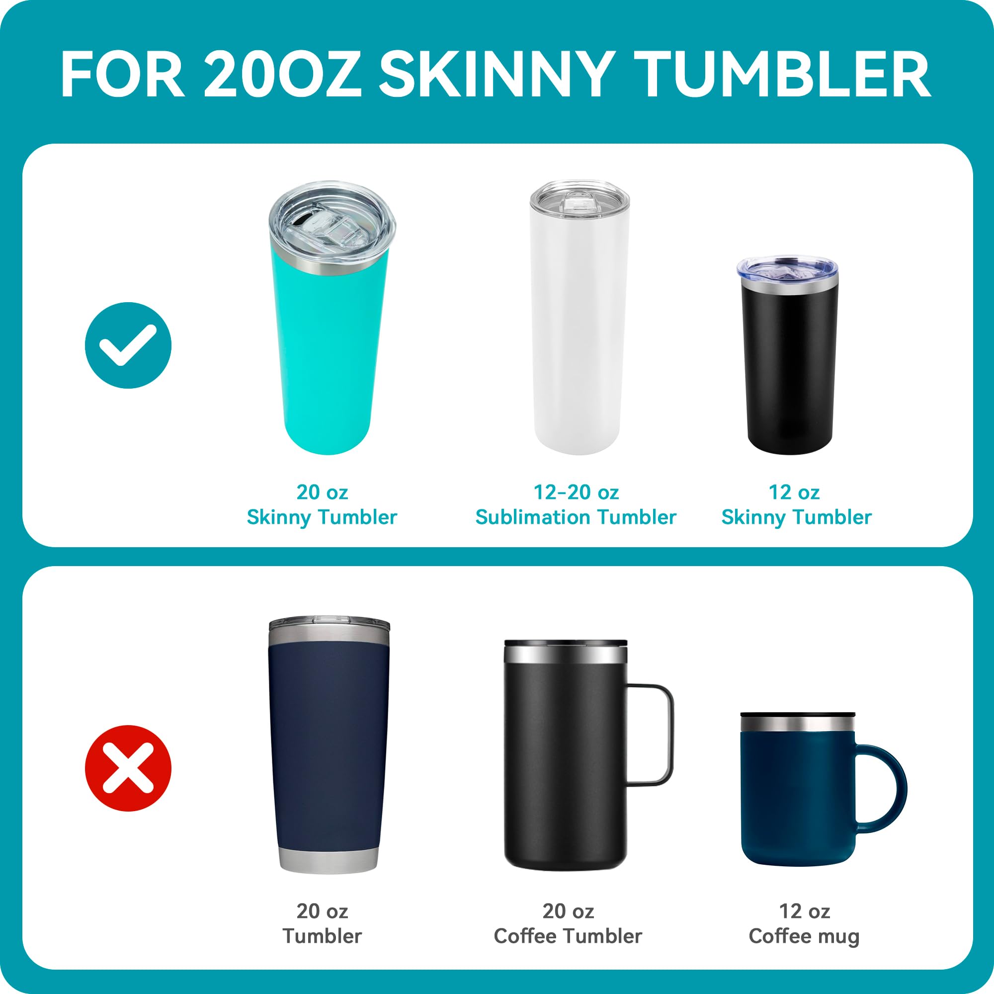 Größe: Nur passend für 340 ml Edelstahl-Weingläser mit einem Innendurchmesser von 63,5 mm. Hochwertiges Material: Der Ersatzdeckel und der Schieber sind ohne BPA. Er ist großartig, um Spritzer zu versiegeln, wenn Sie damit herumlaufen oder ihn in Ihrem Auto haben, aber nicht dazu gedacht ist, ihn in einer Tasche verstaut oder hinlegen zu können. Umweltfreundlich, langlebig und ungiftig & spülmaschinenfest. Beschreibung: Gute Luftdichtheit Design hält Ihre Getränke länger warm und kalt. Wie Sivaphe, Corkcicle und andere Trinkgläser mit einem Fassungsvermögen von 340 ml. Im Lieferumfang enthalten: 4,5 x 368 ml, 340 ml Weinglasdeckel ohne Stiel. Thermobecher Wein 340 Ml Weinglas-Deckel Ohne Stiel (4 Stück), 7,4 Cm Durchmesser Ersatzdeckel Thermobecher Modisch und wiederverwendbar: Die 340 ml Weingläser sind aus lebensmittelechtem 18/8-Edelstahl mit rutschfester mattierter Beschichtung, kein metallischer Geschmack. Es hat ein auffälliges und modisches Aussehen und ist solider und sicherer als andere gewöhnliche Gläser Sie sind leicht zu reinigen und spülmaschinenfest, aber vermeiden Sie die Verwendung in der Mikrowelle. Ersatzdeckel: Außendurchmesser 7,7 cm, Innendurchmesser 7,4 cm, der Ersatzdeckel ist für 340 ml Edelstahl-Weingläser ausgelegt, aber nicht für Corkcicle-Becher geeignet. Hochwertiges Material Spritzwassergeschützter Deckel: Der auslaufsichere Deckel ist mit doppelter Dichtungstechnologie ausgestattet, so dass Sie sich keine Sorgen um Verschütten machen müssen, besonders beim Befüllen von heißen Getränken oder beim Fahren. Soledea Ersatzdeckel für Skinny Tumbler, auslaufsicher, spritzwassergeschützt, Ersatzdeckel für Skinny Tumbler, 6,9–7 cm im Durchmesser, 590 ml