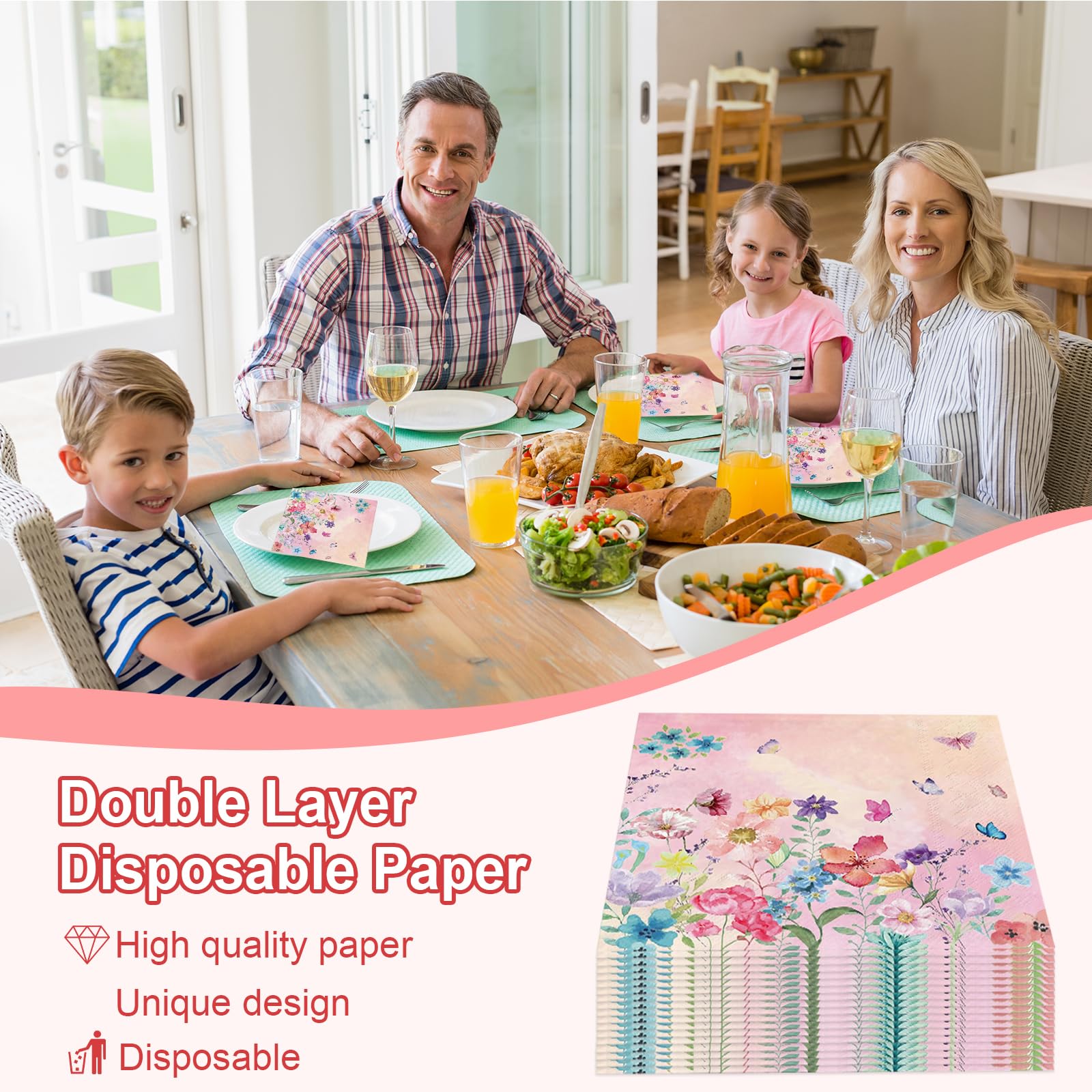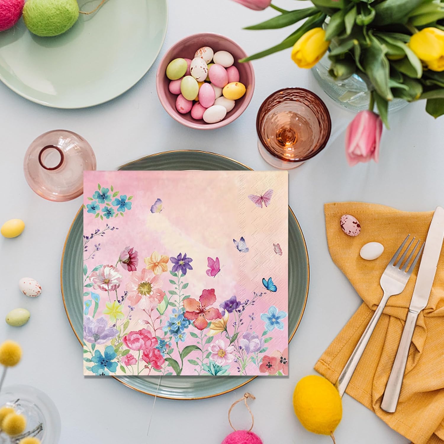 40 Stück Servietten Schön Dass Du Da Bist - Blumen & Schmetterling Design, 33x33 Cm - Papier