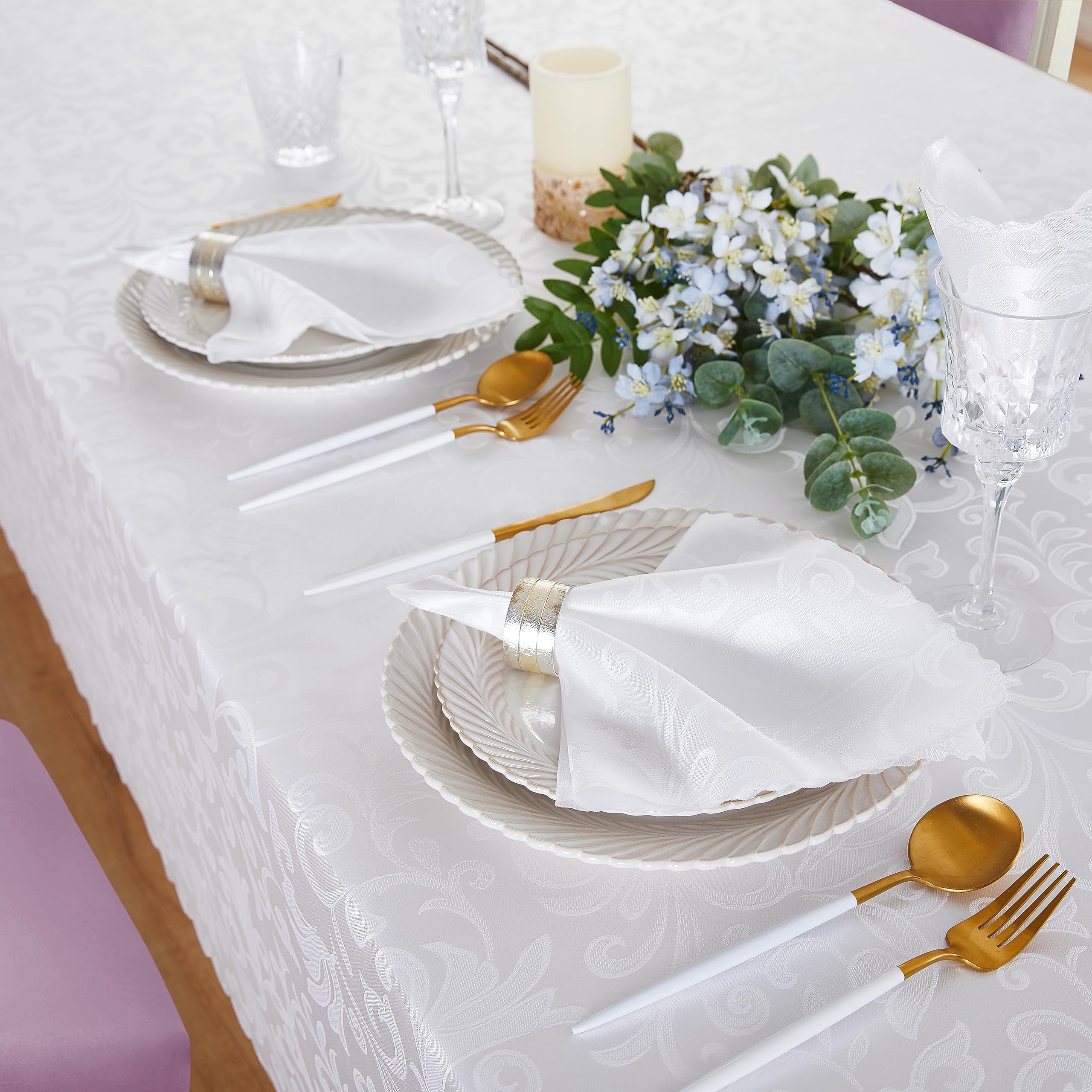 Damast-Servietten Konstanze 50x50cm aus Baumwolle mit umlaufendem HommxJF ist eine Marke, die sich dem Ziel verschrieben hat, ein guter Helfer in Ihrem Zuhause zu sein und unsere Kreationen zu verwenden, um Ihr Leben wieder wunderbar zu machen. Bnejvif Rechteckige Weihnachtstischdecke für den Esstisch, wasserdicht... Tischdeko Gold Damast-Servietten, Jacquard, 45,7 X 45,7 Cm, Weiß, 4 Stück Weihnachtsservietten Gold
